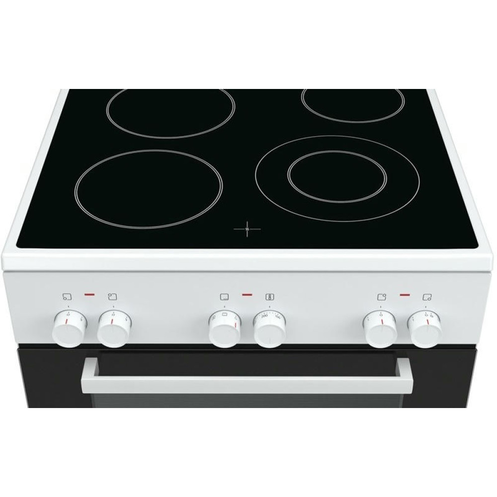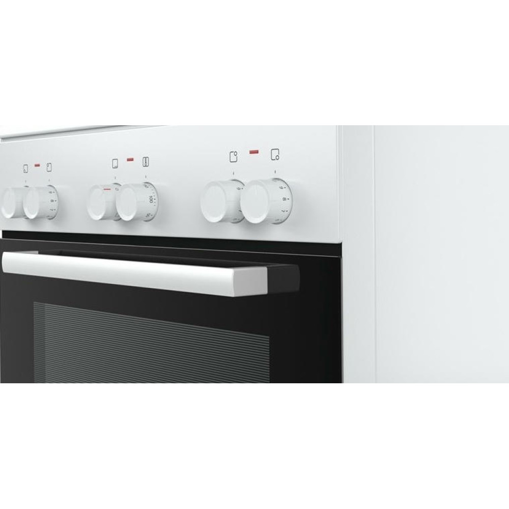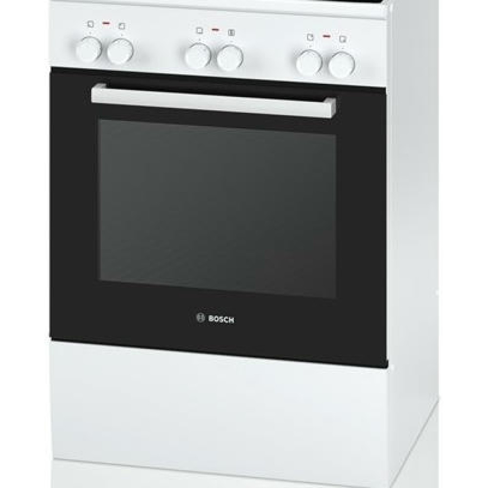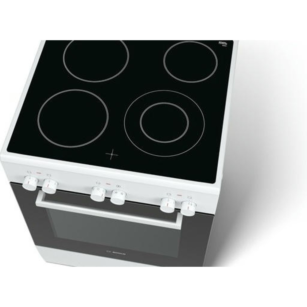 Электрическая плита HCA 623120 R в белом исполнении оснащена стеклокерамической варочной панелью. Круглая зона расширения позволяет использовать посуду небольшого диаметра и экономить при этом электроэнергию. Индикаторы остаточного тепла указывают, что конфорка еще не остыла и прикосновение к ней будет опасным. Внутреннее освещение дает возможность контролировать приготовление без открытия дверцы духового шкафа.