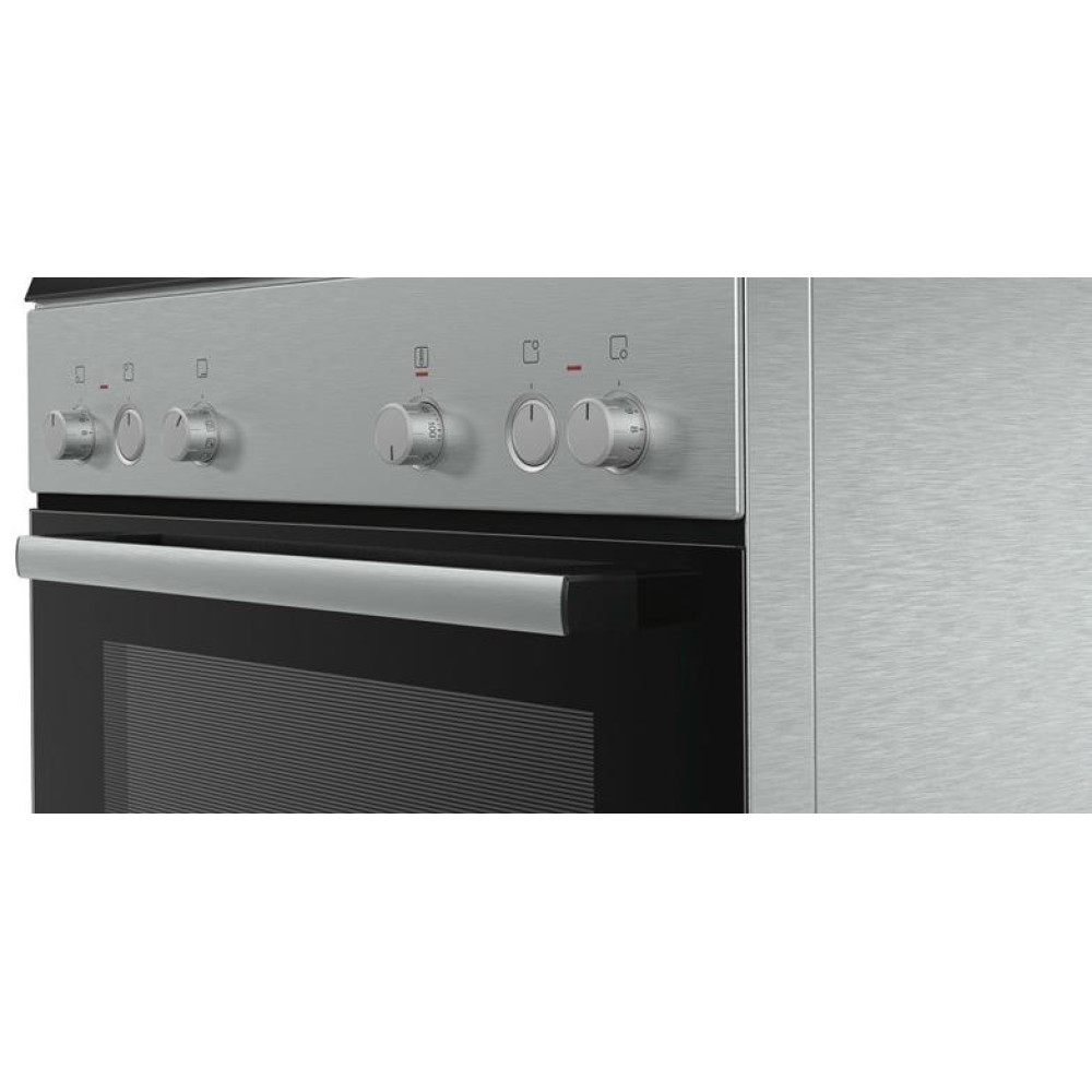 Электрическая плита HCA723250G в цвете нержавеющая сталь оснащена каталитическими панелями на задней стенке. Стеклокерамическая поверхность — это свобода в приготовлении и легкость очистки. Переключатели утапливаются в корпус, что обеспечивает защиту от случайного включения прибора. Восемь режимов нагрева позволяют подобрать оптимальный для любого блюда. Гриль малой площади экономит электроэнергию при приготовлении небольшого количества порций.
