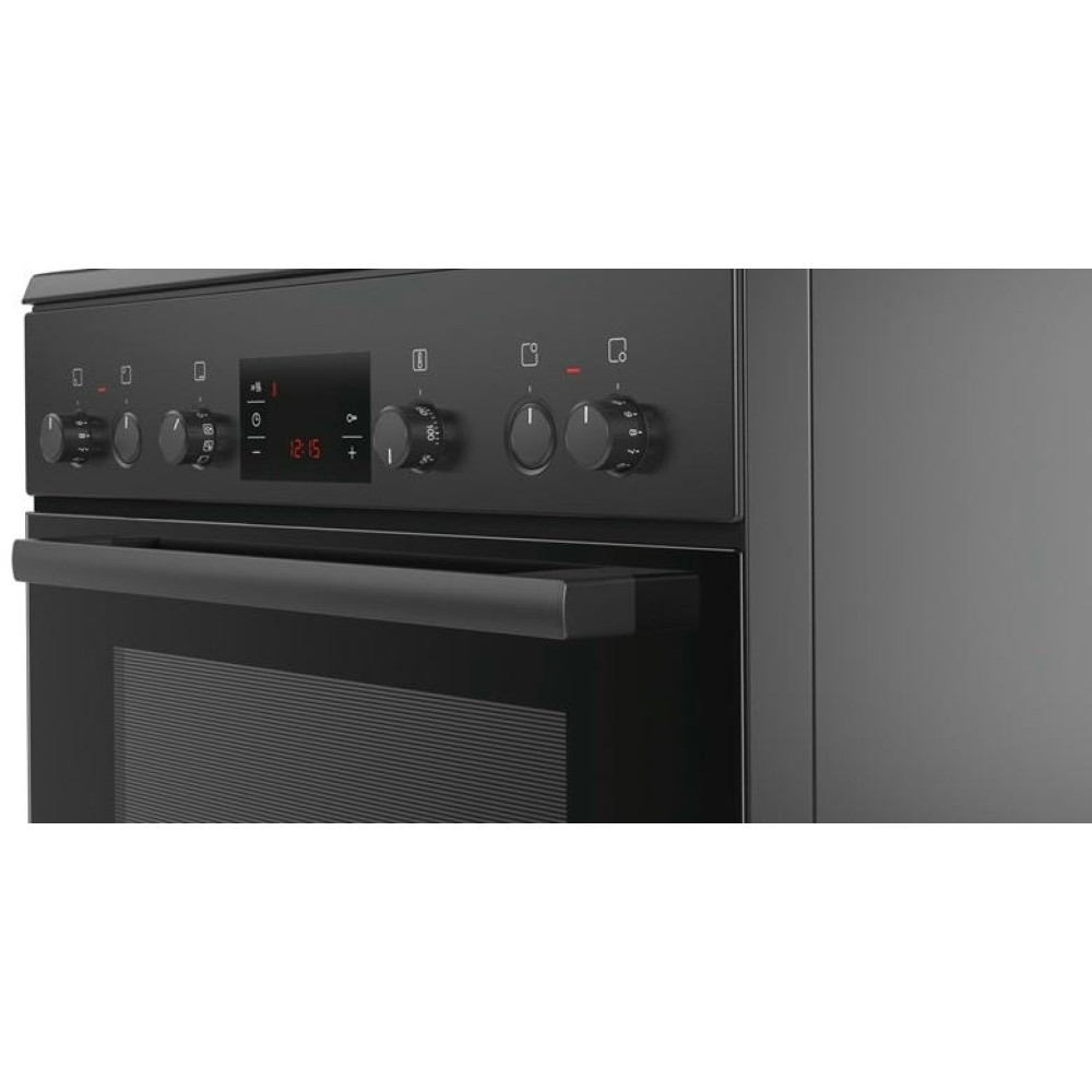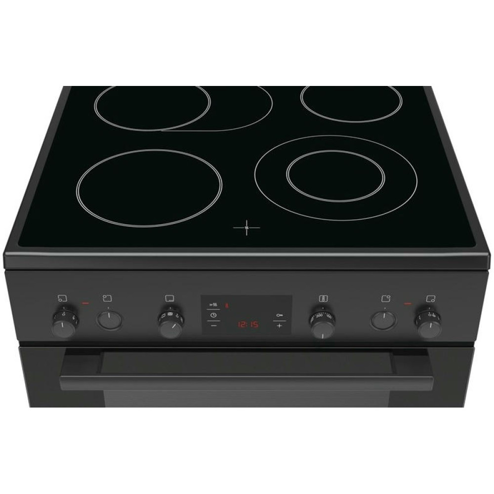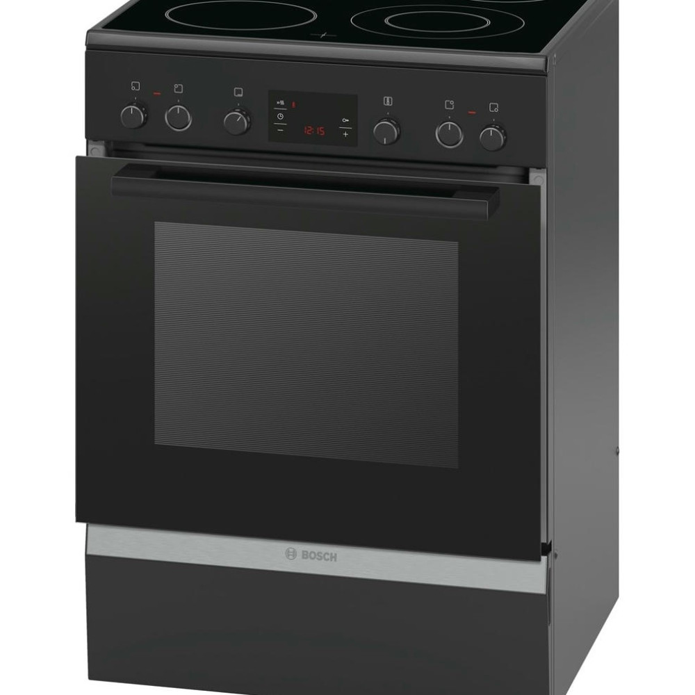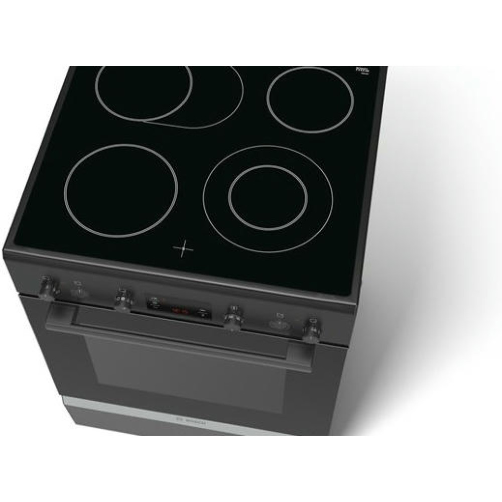 Электрическая плита HCA744660R оснащена восьмью режимами нагрева для приготовления различных видов блюд. Выдвижная тележка — одна из особенностей модели. Механизм выдвижения противня обеспечивает свободный и безопасный доступ к содержимому камеры. Автоматический быстрый разогрев экономит время — при включении прибора начинают работу все нагревательные элементы одновременно. Индикаторы остаточного тепла и блокировка от детей повышают уровень безопасности.