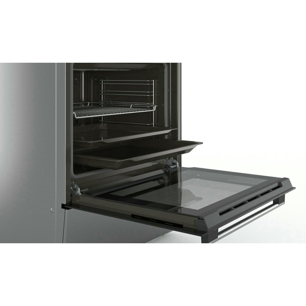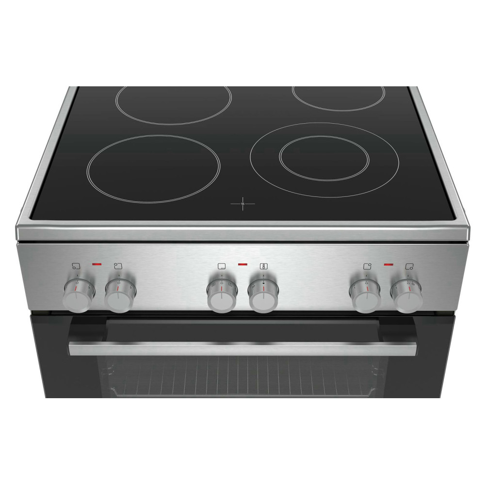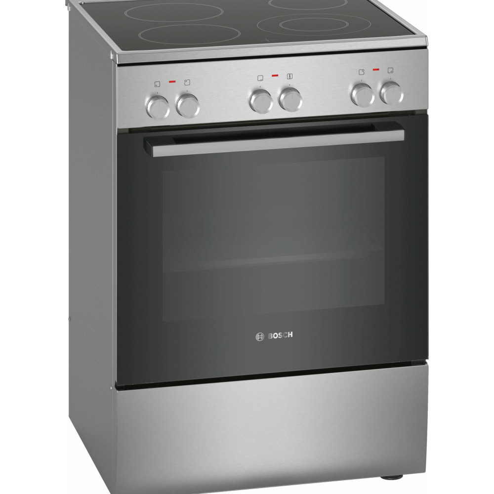 Плита Bosch HKA090150 представлена в цвете «нержавеющая сталь». Варочная поверхность выполнена из стеклокерамики, которая устойчива к воздействию высоких температур и поэтому долговечна. Данная модель комплектуется одной двухконтурной конфоркой. С ее помощью можно выбирать большую или меньшую зону нагрева в зависимости от диаметра используемой посуды, что также позволяет экономить электроэнергию. Среди различных 7 режимов предусмотрены программы «Для пиццы» и «Нижний жар», идеально подходящие для пирогов и печенья.