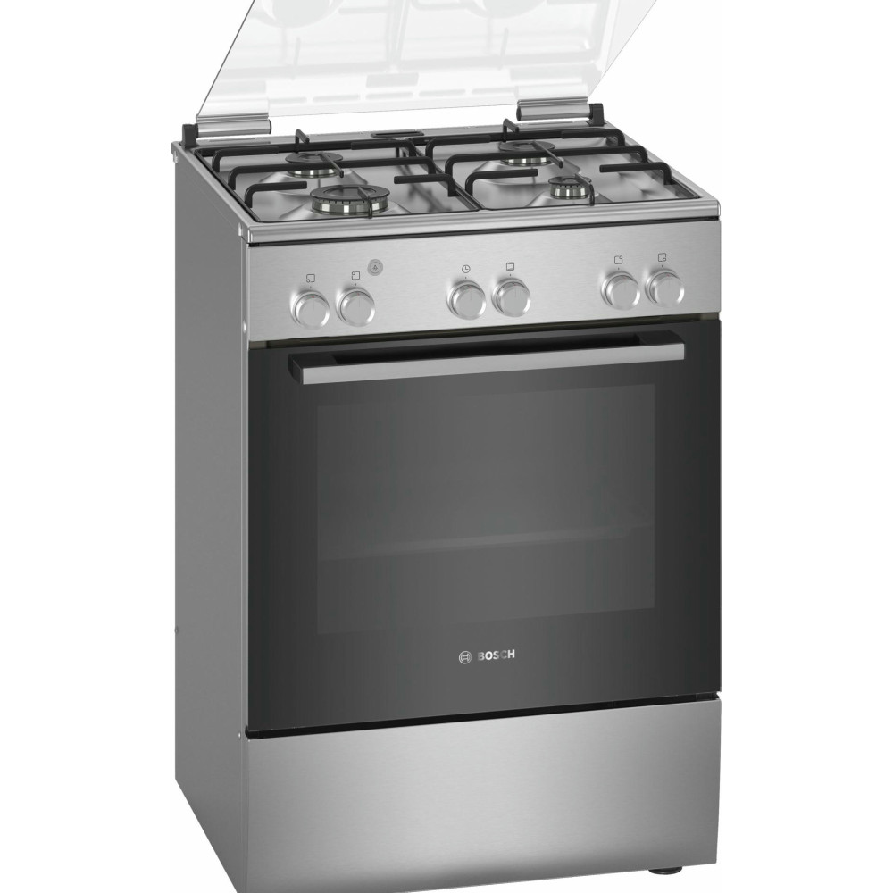 Плита Bosch HGA128D50R представлена в цвете «нержавеющая сталь» и оснащена широким функционалом: 4 газовых конфорки, в том числе экономичная и повышенной мощности, с помощью которой можно быстро нагреть крупногабаритную посуду; духовой шкаф имеет большой объем (71 литр) и подходит для приготовления сразу нескольких блюд; режим «вращающийся вертел» для равномерной прожарки крупных кусков мяса или, например, цыпленка целиком.