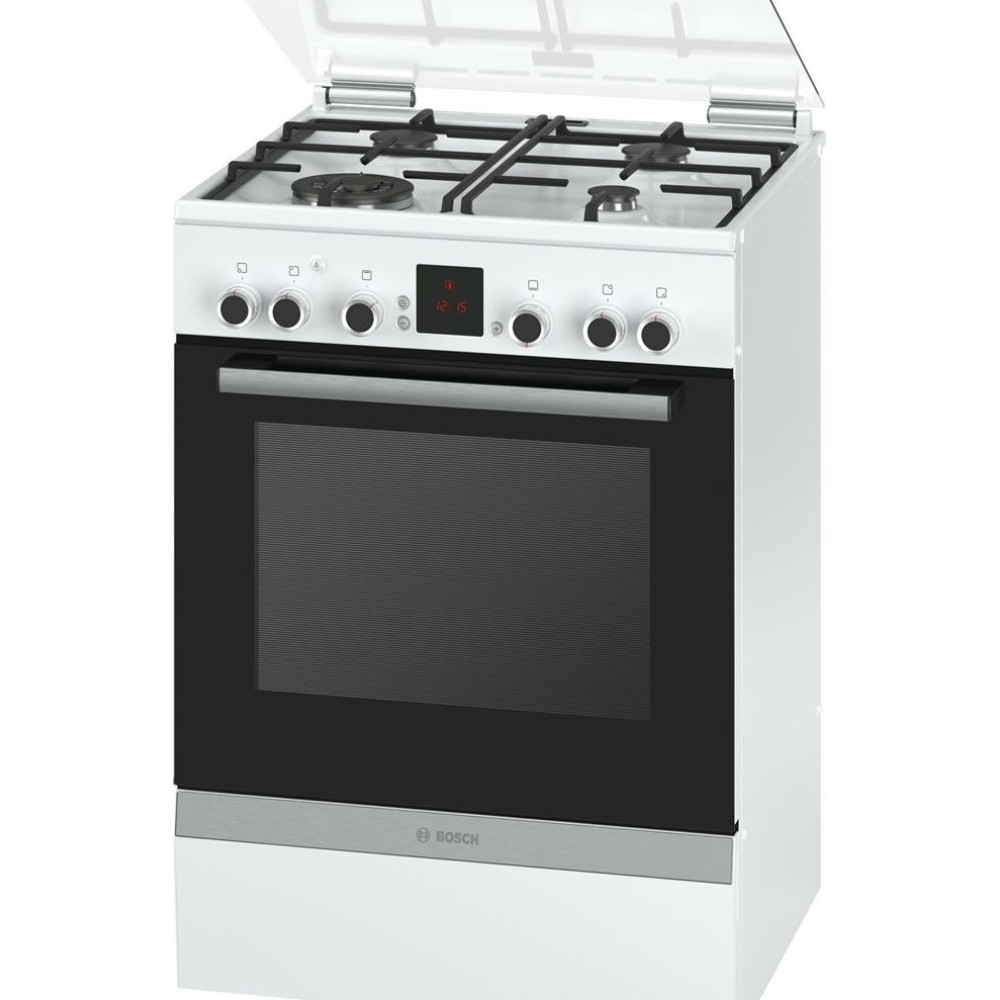 Отдельностоящая газовая плита HGA34W325R в белом исполнении оснащена цифровым дисплеем и таймером. Поворотные регуляторы обеспечивают плавную настройку параметров. Внутреннее освещение духовки позволяет следить за приготовлением без открытия дверцы шкафа. Дверца оснащена амортизатором для бесшумного открытия и закрытия даже при резком движении. В выдвижном ящике удобно хранить кухонные принадлежности и посуду.