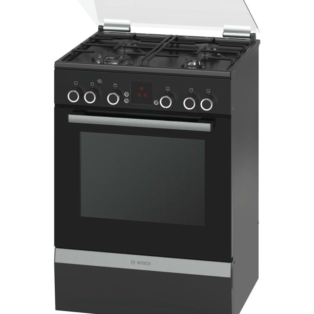Газовая плита в черном исполнении HGA34W365R оснащена крышкой. Стекло защищает стену от попадания жира и других загрязнений от приготавливаемой пищи. Держатели для посуды выполнены из долговечного материала — чугуна. Шероховатая поверхность решеток защищает посуду от соскальзывания. Вместительная духовка позволяет готовить на нескольких уровнях одновременно. Электромеханический вертел расширяет возможности модели. Полностью стеклянная внутренняя поверхность двери обеспечивает легкую чистку.