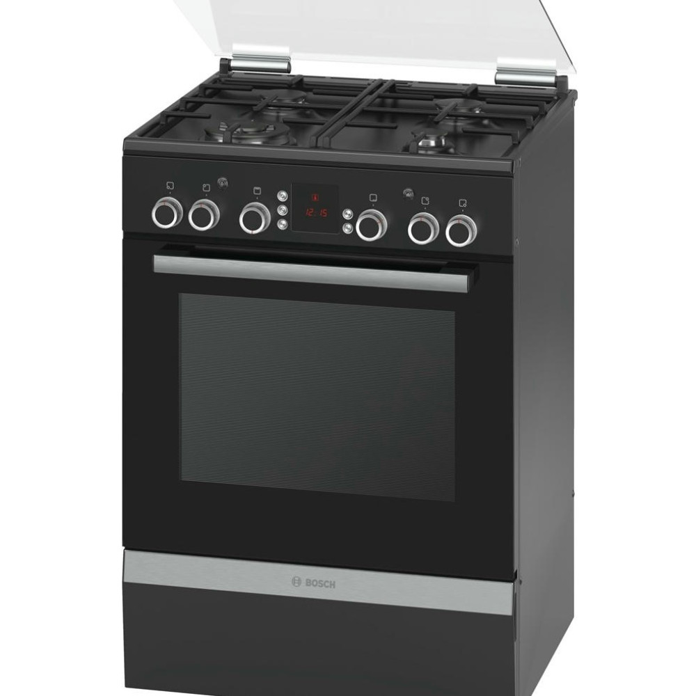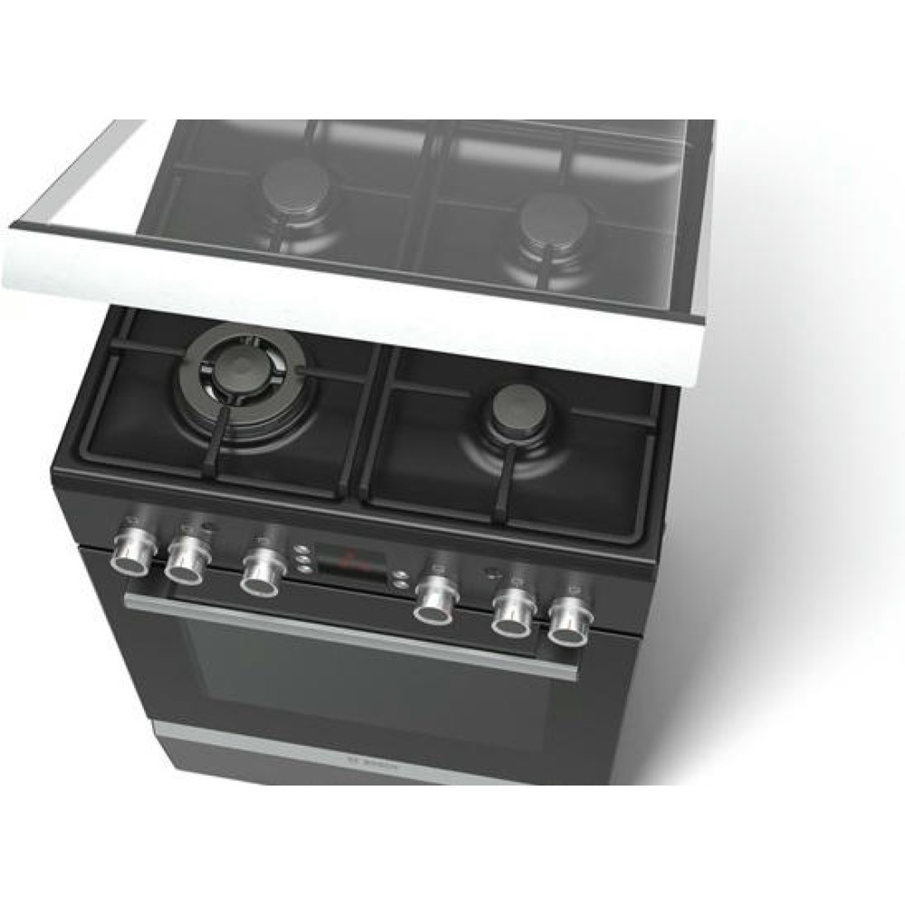 Газовая плита HGA94W465R оснащена пятью режимами нагрева. Гриль с конвекцией равномерно распределяет горячий воздух по всему объему камеры для качественного выпекания и придания продуктам золотисто-хрустящей корочки. Автоматический электроподжиг конфорок и кнопочный электроподжиг духовки создают дополнительный комфорт использования. Телескопические направляющие легко выдвигаются и обеспечивают свободный доступ к блюду.