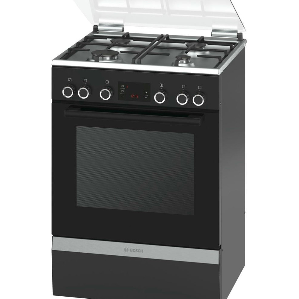 Отдельностоящая комбинированная плита HGD745265R в черном исполнении — это качество, стиль и надежность. Газовые конфорки различной конфигурации обеспечивают комфорт при приготовлении блюд. Поворотные переключатели обладают плавным ходом для точной регулировки мощности пламени. Электрическая духовка оборудована восьмью режимами нагрева и системой подачи горячего воздуха 3D Hotair Plus для качественных результатов. Стеклянная крышка — полезное дополнение к комплектации модели.