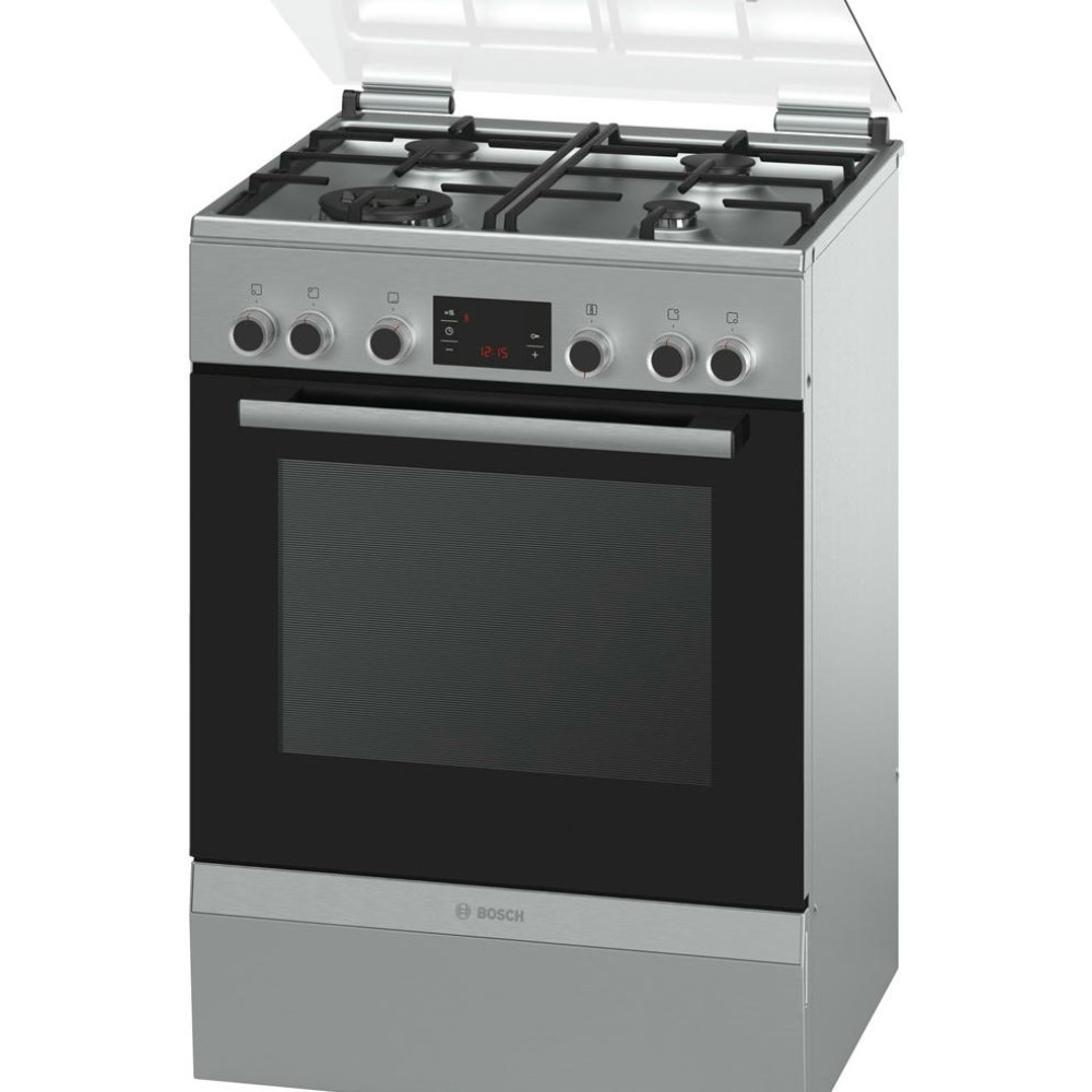 Комбинированная плита HGD74W355R дополнена стеклянной крышкой, которая защищает стену от попадания загрязнений. Рабочая поверхность из нержавеющей стали легко чистится и смотрится эстетично в любом интерьерном решении. Конфорка для вока расширяет возможности приготовления. Режим «Гриль с конвекцией» — это равномерное пропекание блюда внутри и хрустящая корочка снаружи. Автоматический электроподжиг, дверца с амортизатором SoftClose и блокировка от детей создают дополнительный комфорт использования.