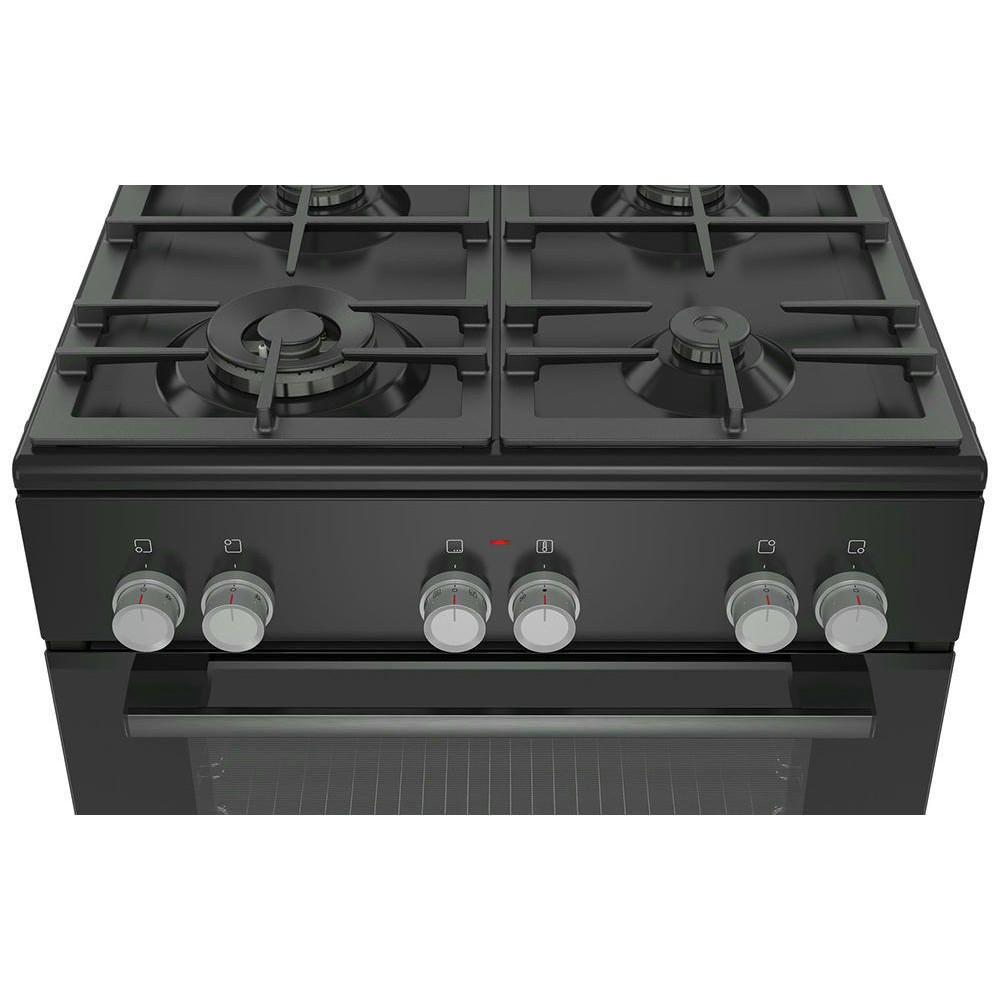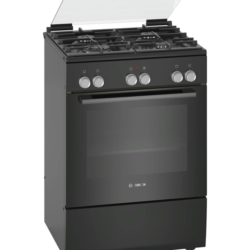 Комбинированная плита Bosch HXA090I60R представлена в черном цвете. Режимы с конвекцией, предусмотренные в этой модели, среди которых «3D горячий воздух», обеспечивают равномерное и качественное приготовление любых блюд на трех уровнях одновременно. Прибор оснащен газовыми конфорками разной мощности, в том числе WOK и экономичной, идеально подходящей для варки на медленном огне. Термоэлектрическая система гарантирует защиту от утечек газа, если пламя случайно погаснет.