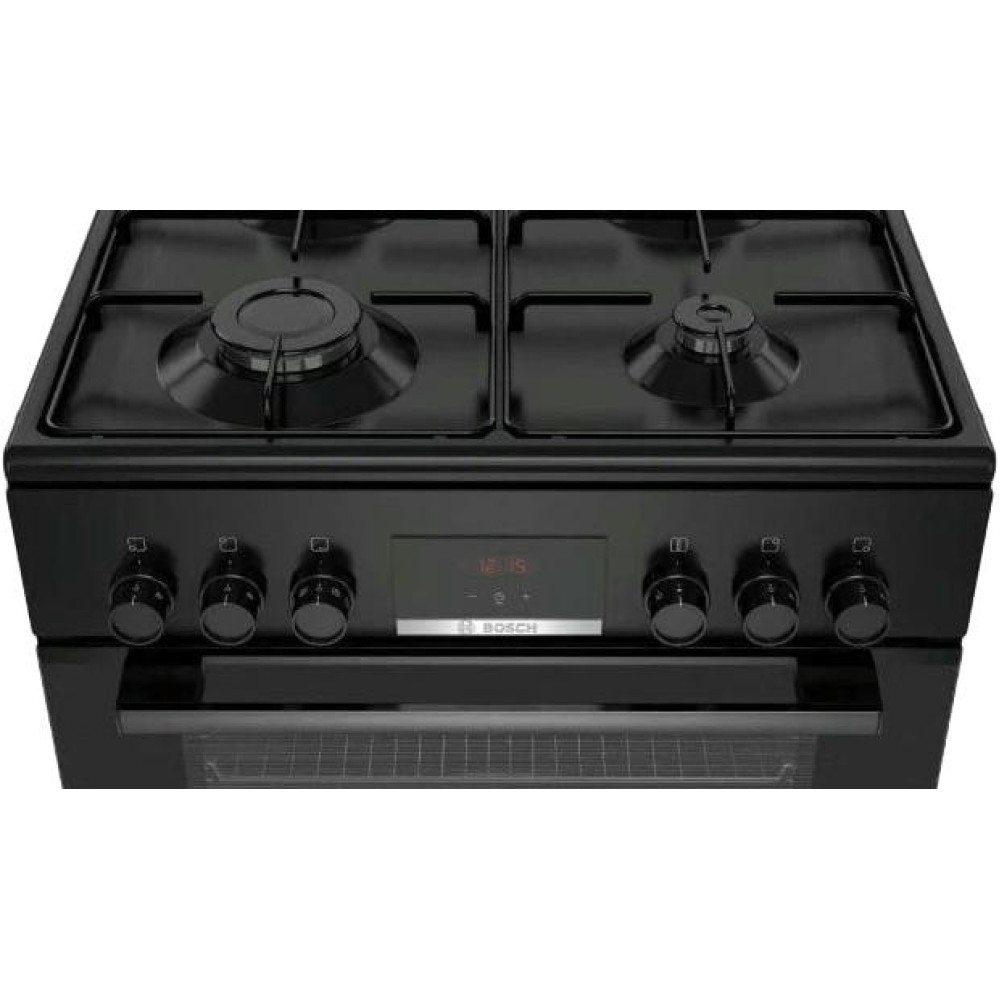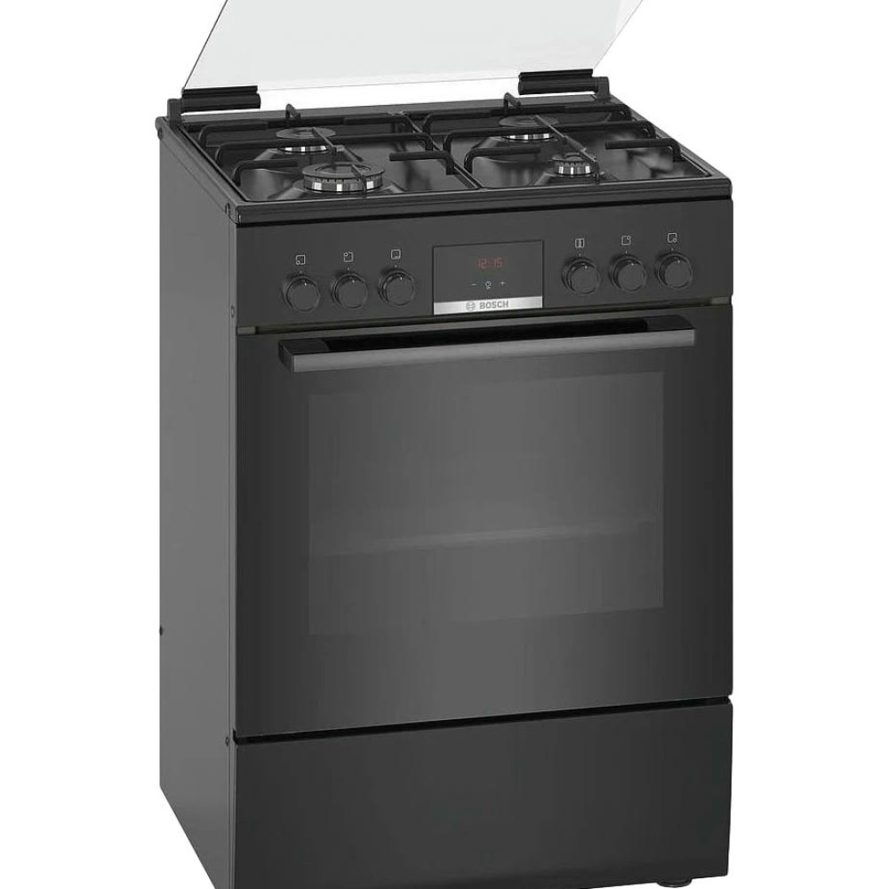 Комбинированная плита Bosch HXN390D61L предназначена для эксплуатации в бытовых условиях. Модель оборудована четырьмя горелками разной мощности. Это позволяет готовить несколько блюд одновременно в посуде различной формы и размера. Эмалированная поверхность характеризуется высокой устойчивостью к появлению царапин и трещин. Электроподжиг способствует комфортной эксплуатации. За надежное положение емкостей над огнем отвечают чугунные решетки. Устройство дополнено откидной крышкой, которая защищает стену от попадания капель масла. Встроенный цифровой дисплей с подсветкой отображает включение, текущее время, режим работы духовки и температуру нагрева. Режим конвекции дает возможность распределить равномерно теплый воздух по всей камере, тем самым обеспечить 3D-нагрев.