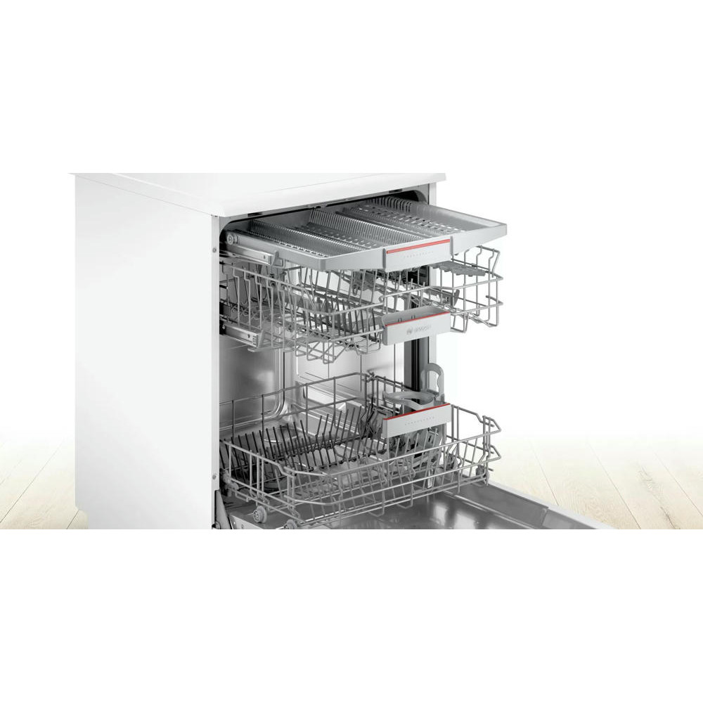 Посудомоечная машина Bosch SGS2HMW1CR имеет систему защиты от протечек AquaStop, которая обезопасит от случайного затопления. Технология ActiveWater максимально эффективно расходует воду для оптимального результата, а бесщёточный мотор EcoSilenceDrive обеспечивает тихую работу с минимальным уровнем шума.
