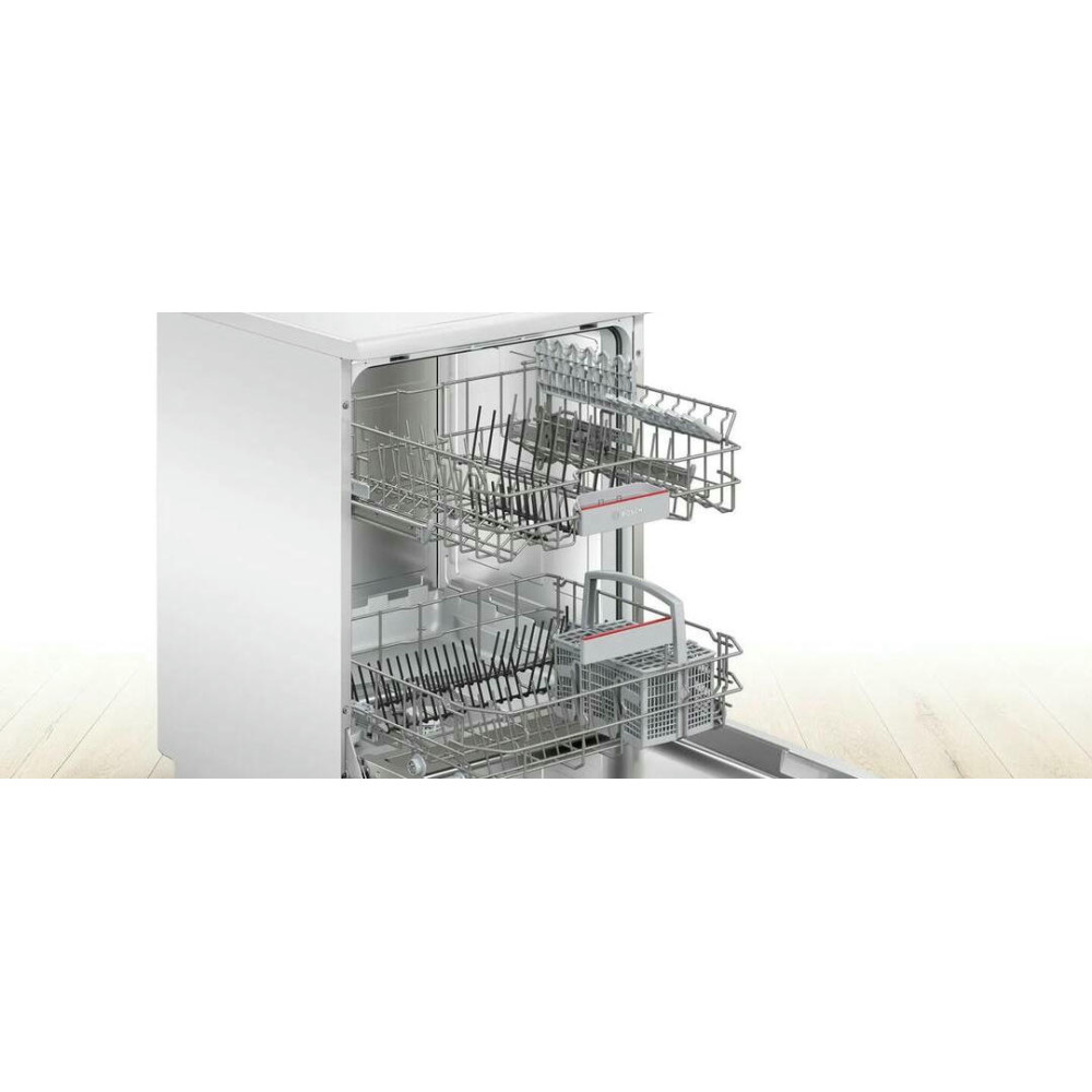 Посудомоечная машина Bosch SMS25GW02E - это сочетание инновационных технологий и элегантного дизайна. Цветовая гамма белого цвета придает модели свежий и чистый вид, идеально вписывающийся в любой интерьер кухни. Панель управления, расположенная в верхней части, обеспечивает удобство и простоту использования. Благодаря эргономичному дизайну, управление машиной становится интуитивно понятным. Модель оснащена пятью программами мойки, которые позволяют выбрать наиболее подходящий режим в зависимости от степени загрязнения посуды и времени, доступного для мойки. Благодаря функции половинной загрузки, можно сэкономить воду и электроэнергию, если нужно помыть небольшое количество посуды. Система защиты от протечек AquaStop гарантирует безопасность использования, предотвращая возможные утечки воды.