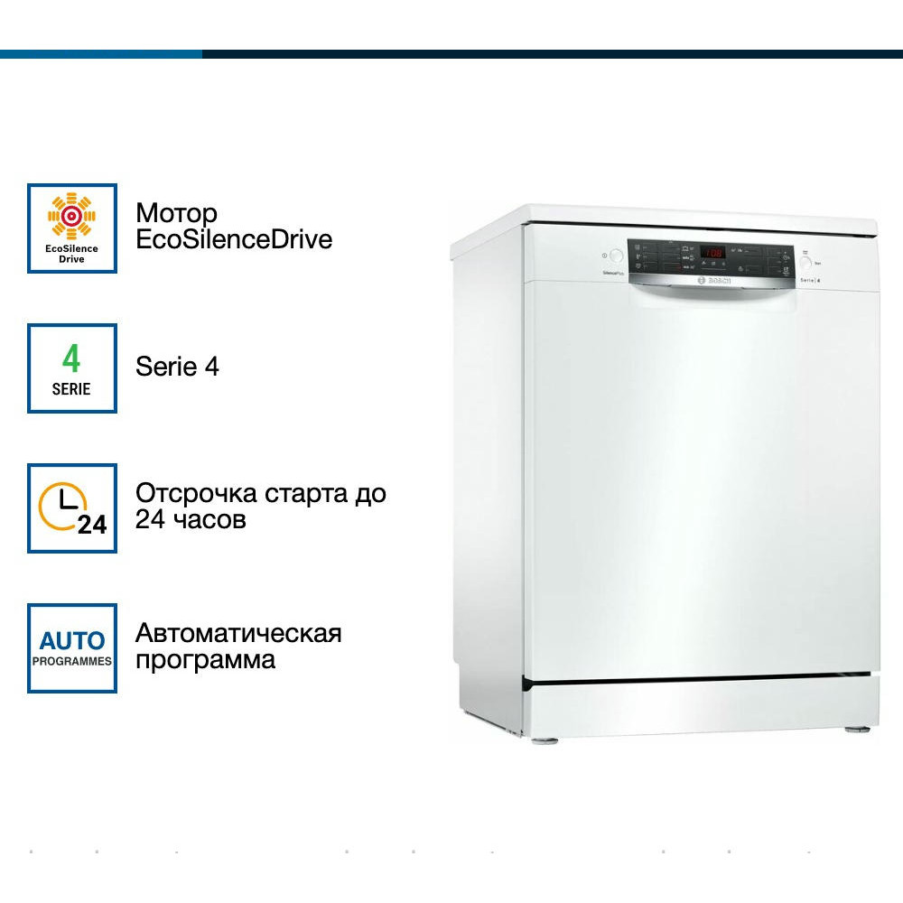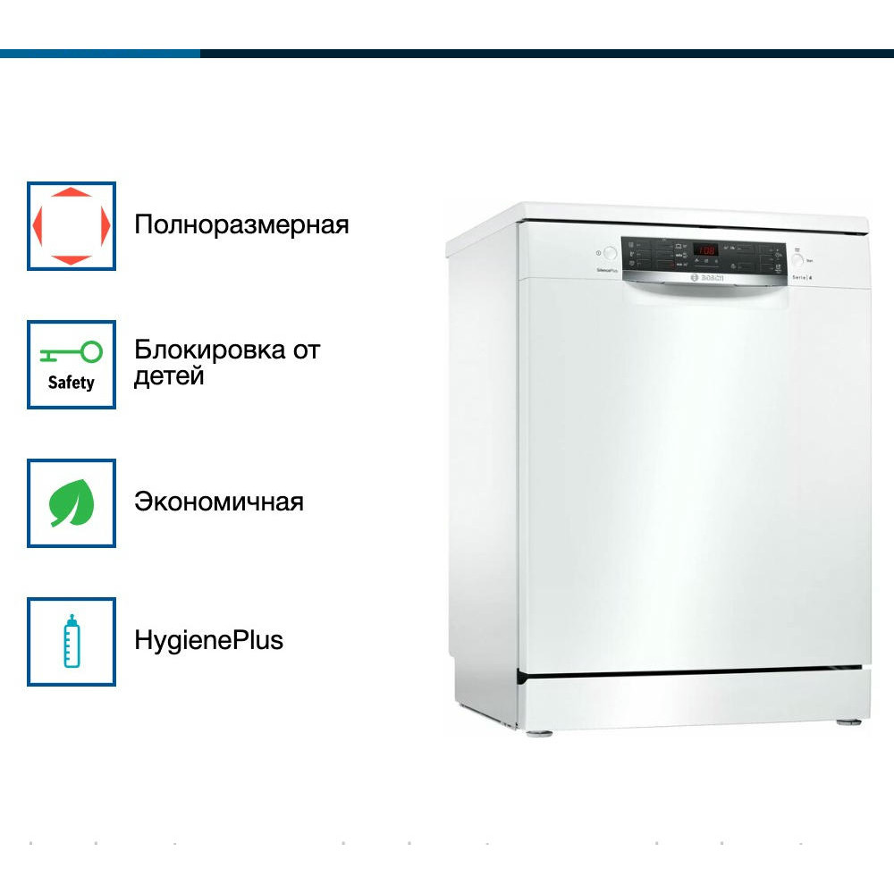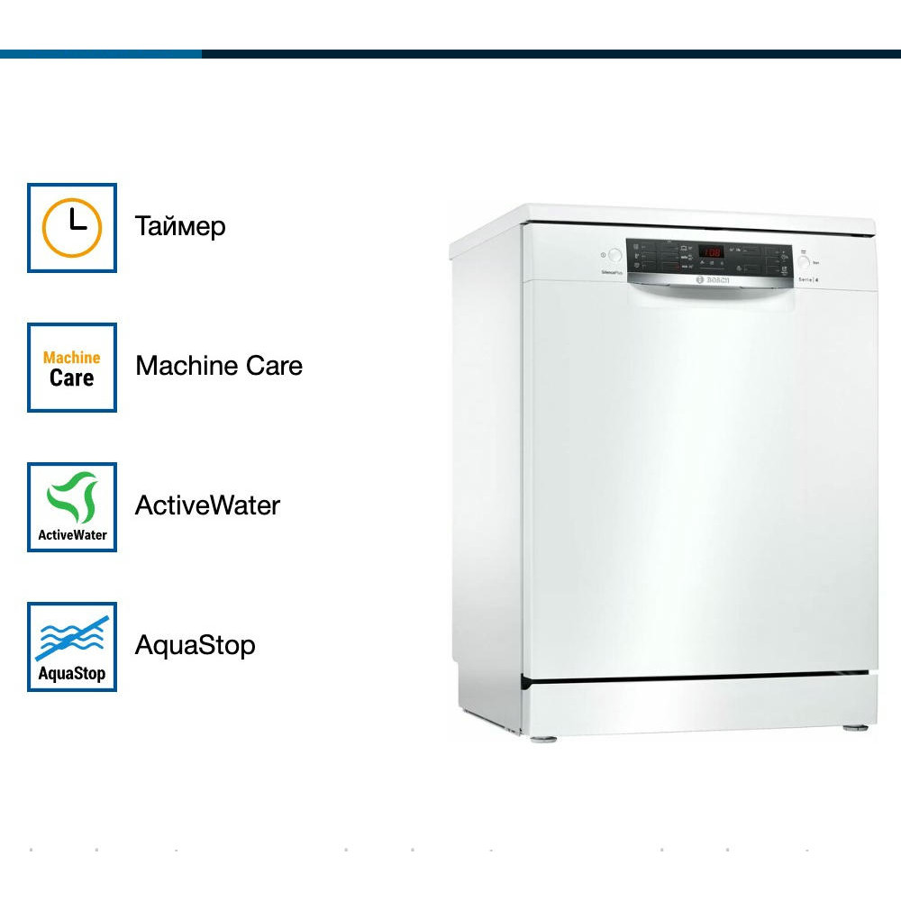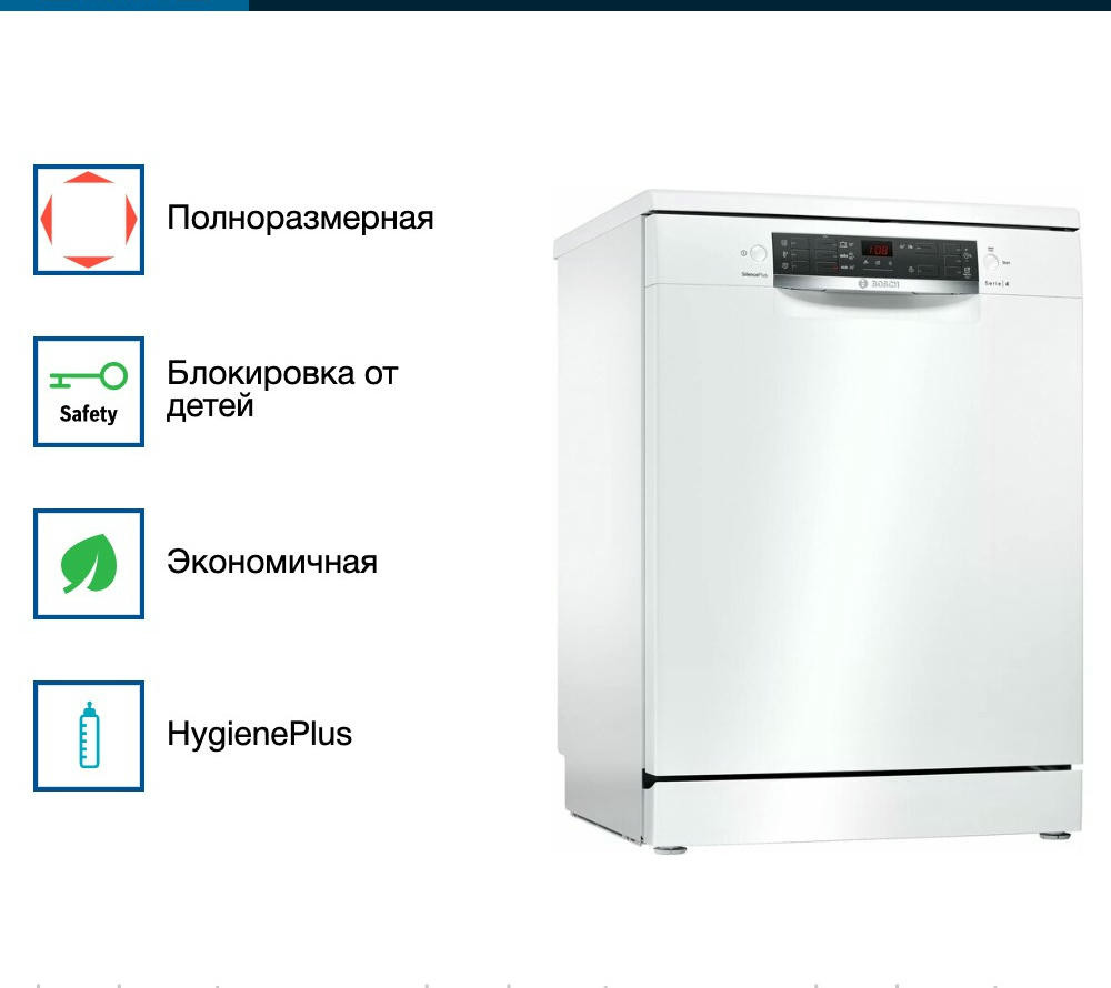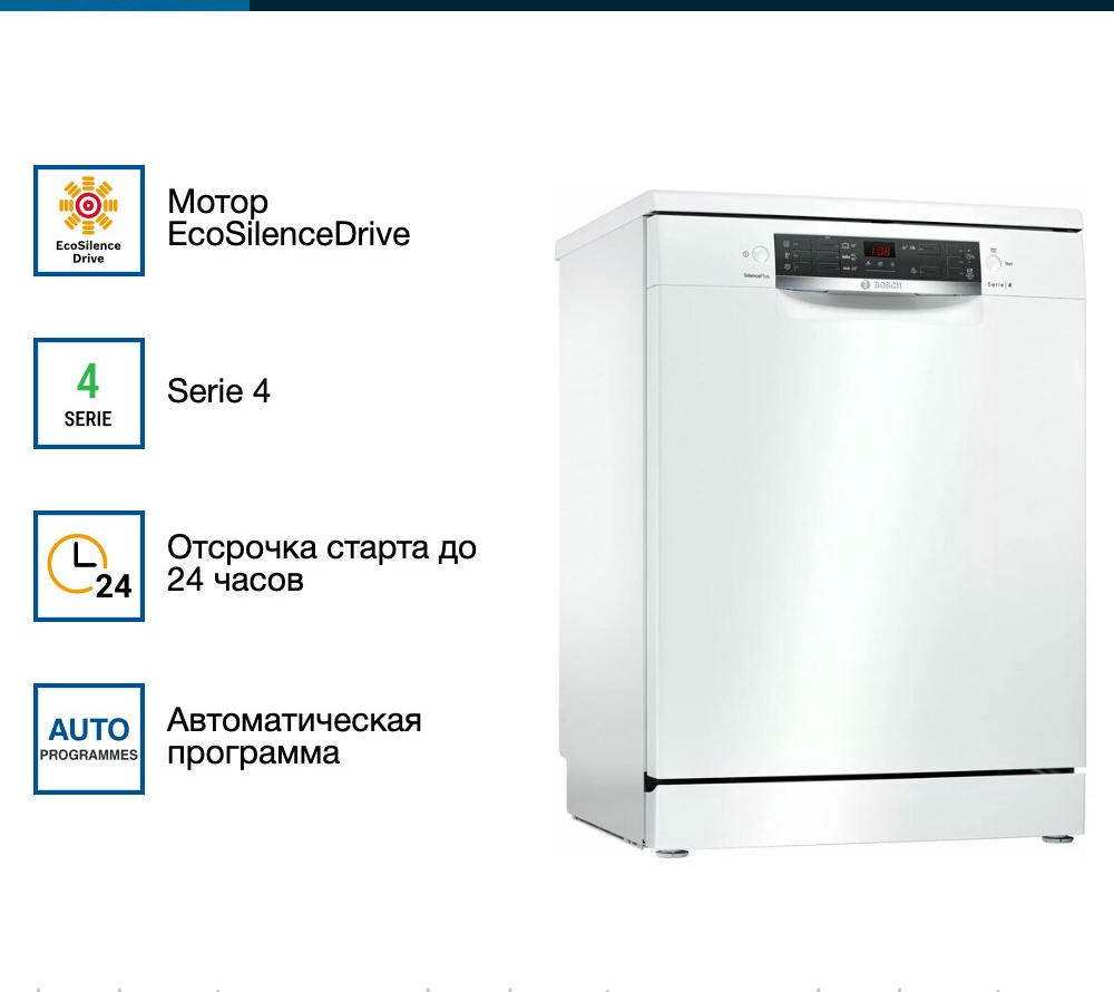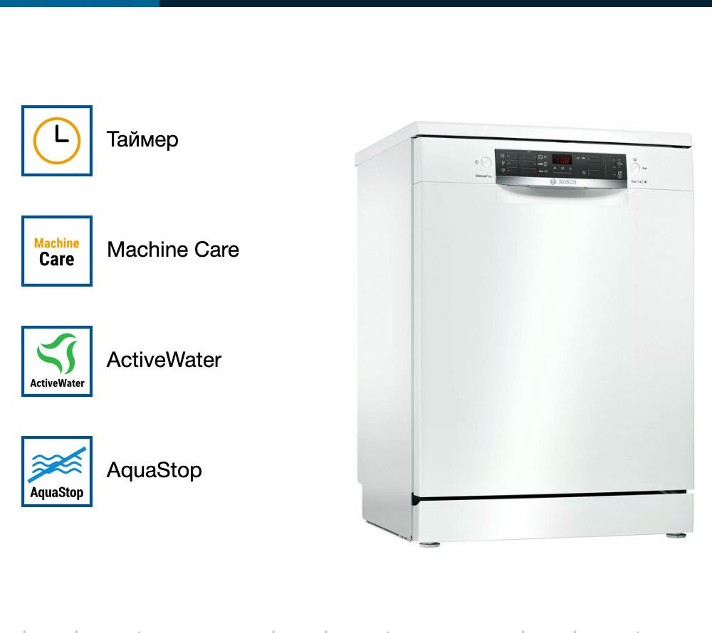 Посудомоечная машина Bosch SMS45DW10Q оснащена мотором EcoSilence Drive он долговечен, также он очень тихий в работе. Функция MachineCare удаляет грязь и накипь , рекомендуется использовать через каждые 30 циклов стирки. Система AquaStop полностью защитит от любых протечек.