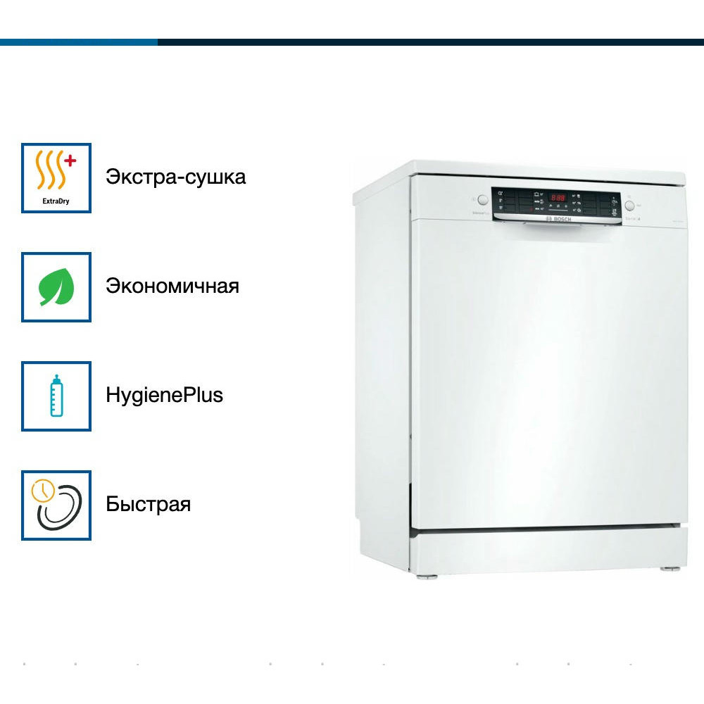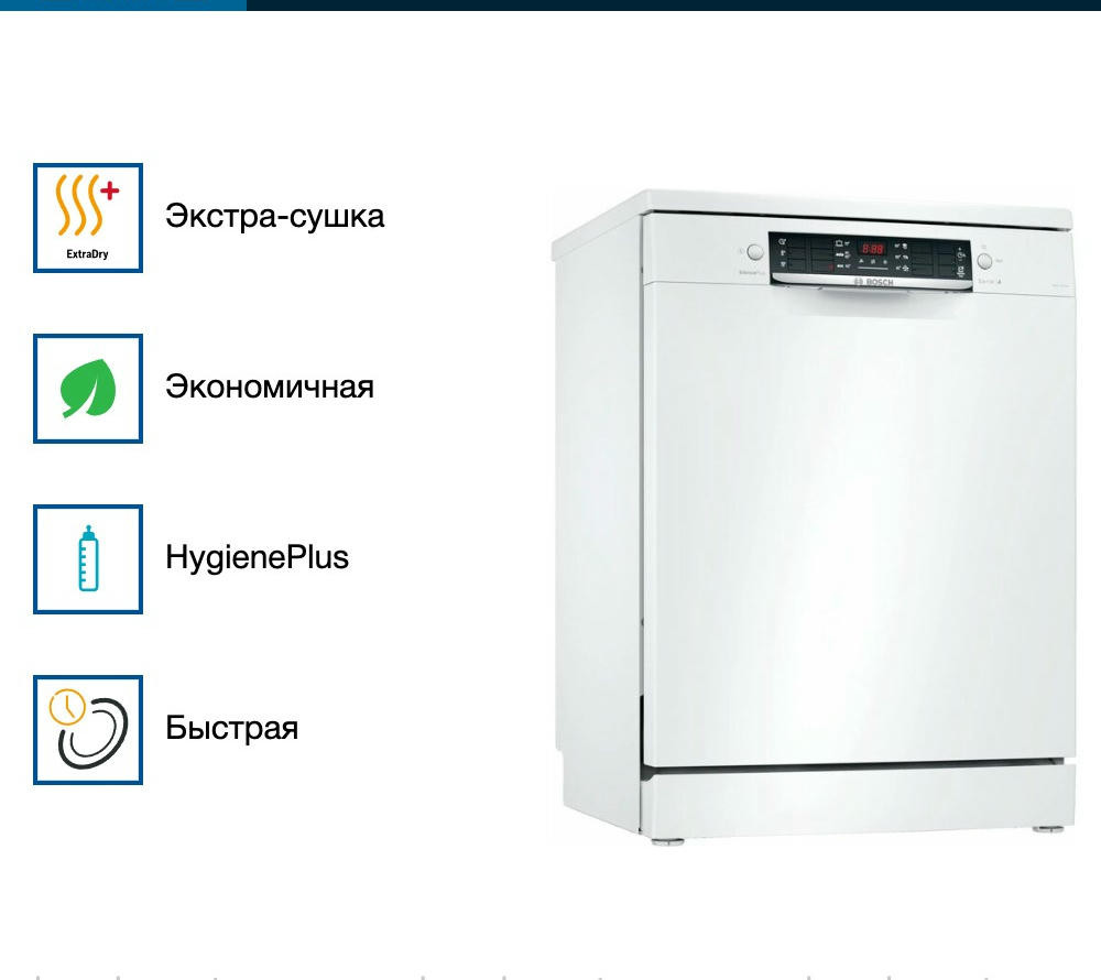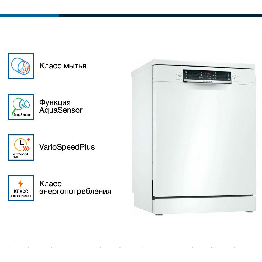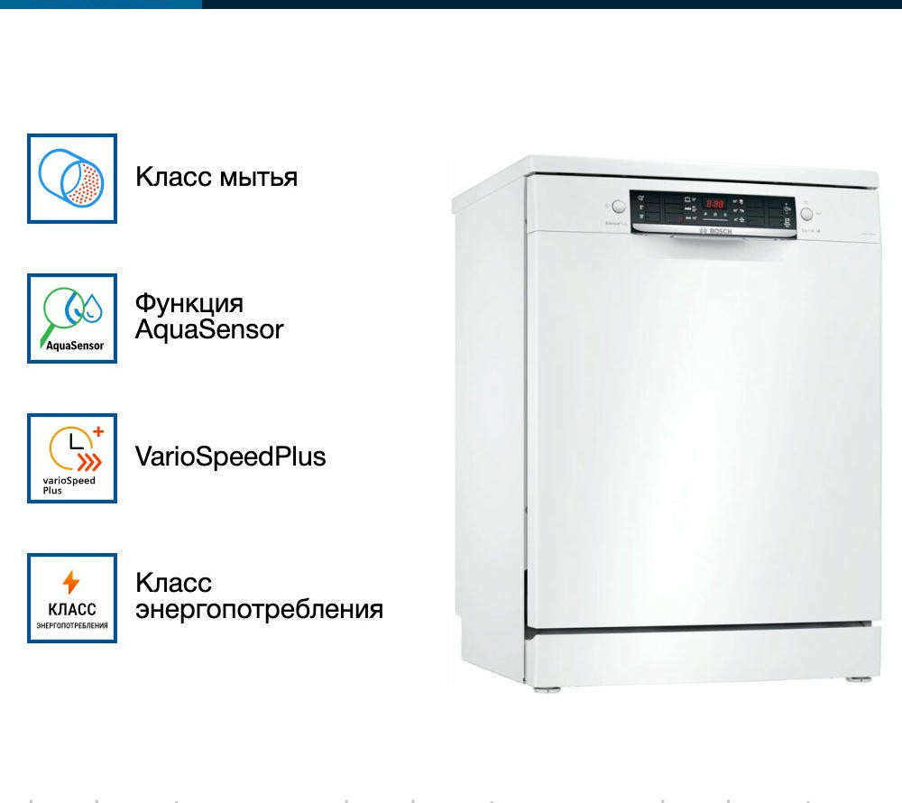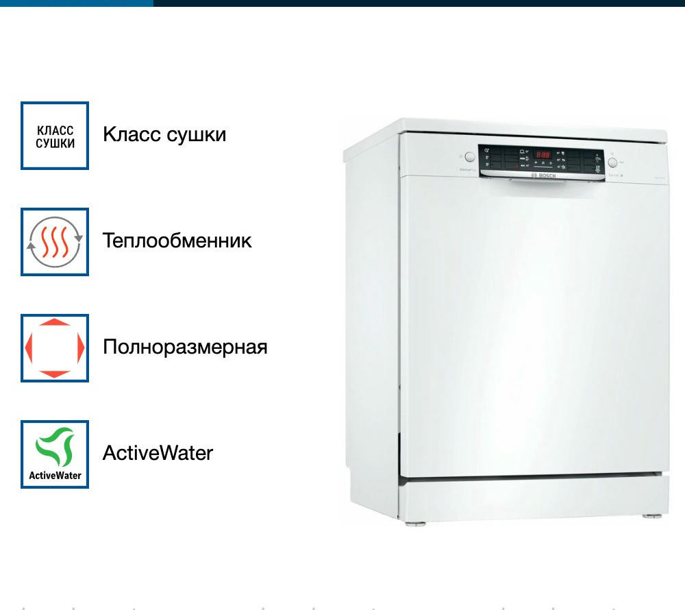 Посудомоечная машина Bosch SMS46MW20M выполнена в белом цвете и является отдельностоящей. Открытая панель управления имеет в себе дисплей и кнопки для легкой и быстрой установки настроек. Корзина VarioDrawer вместит в себя не только столовые приборы, но и другую утварь не большого размера – половники или маленькие чашечки. Снизить энергозатраты поможет датчик AquaSensor – он определяет, насколько загрязнена вода, исходя из этого, регулирует количество воды и энергии.