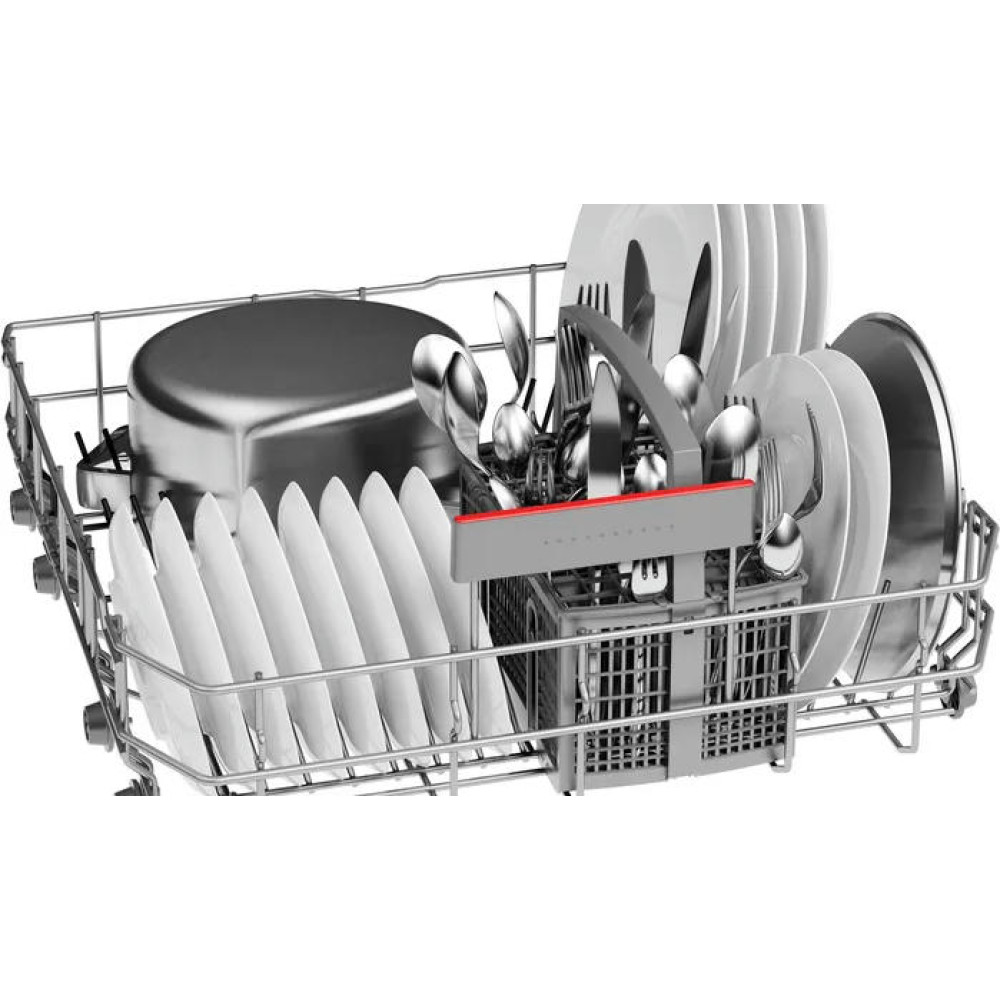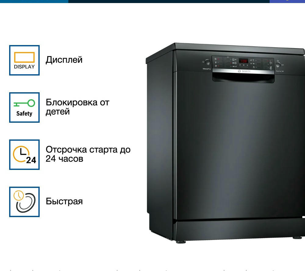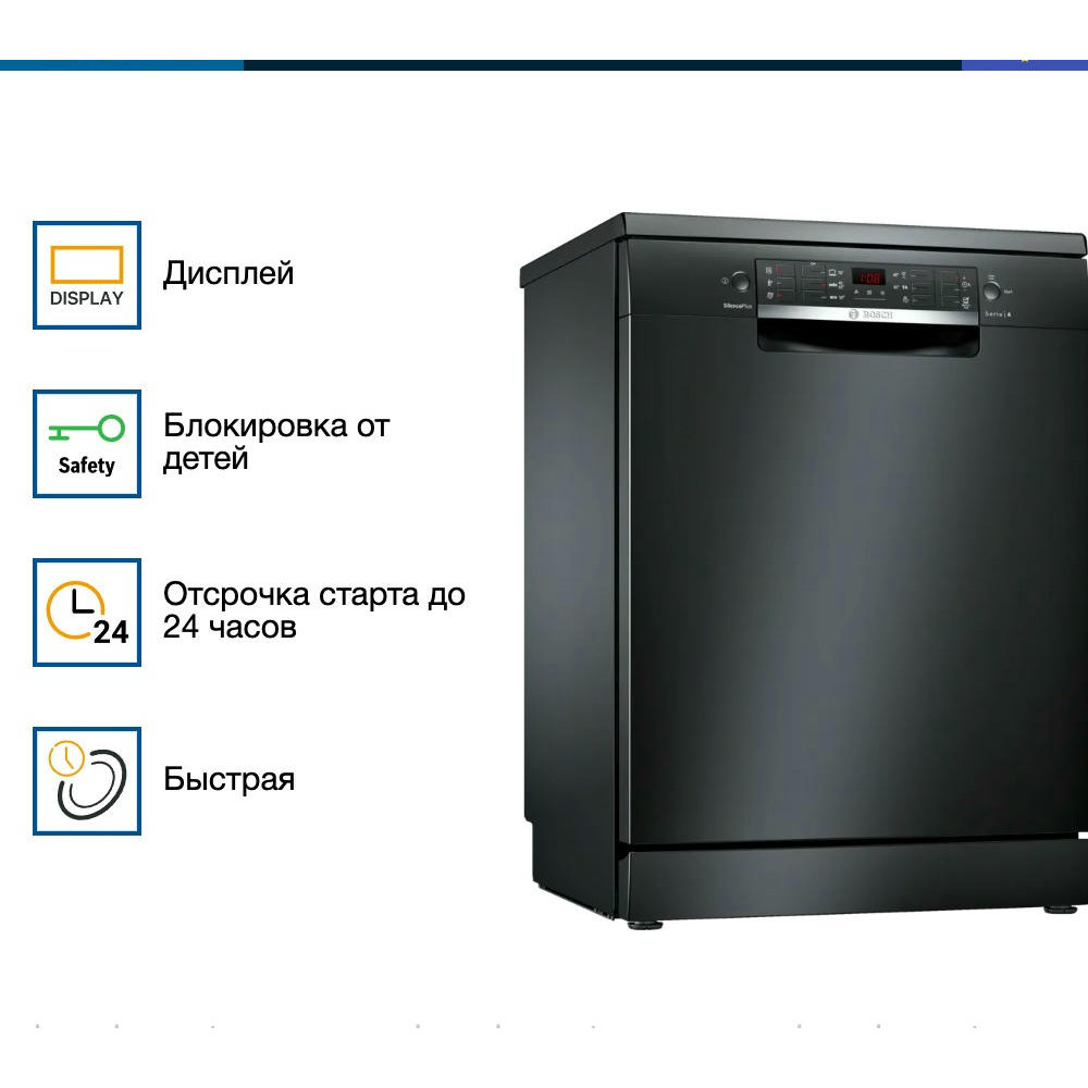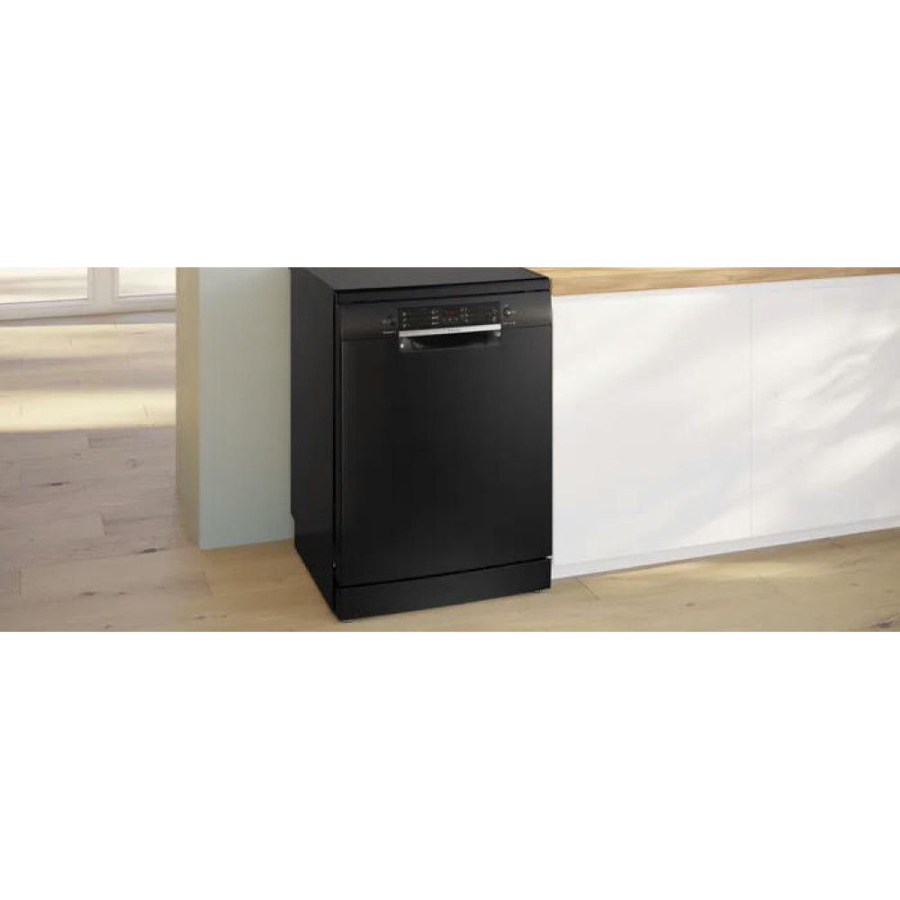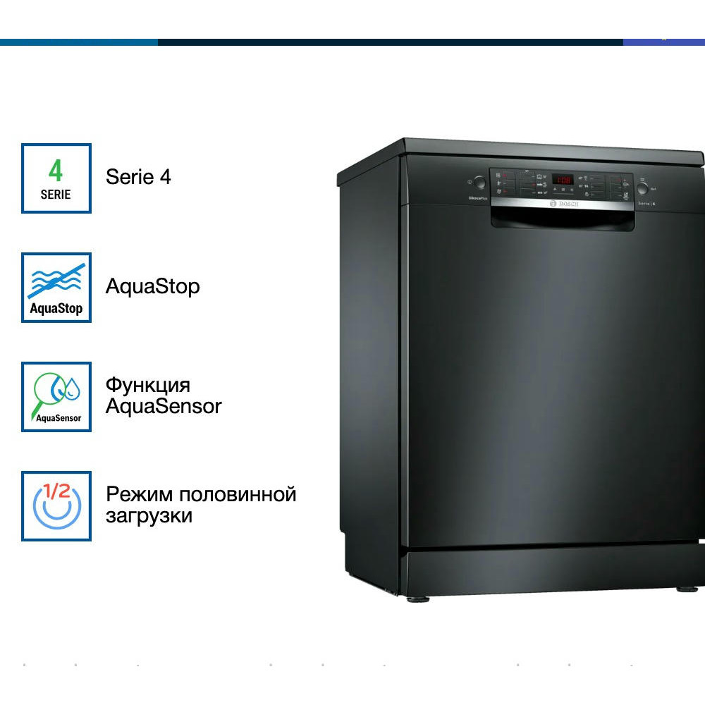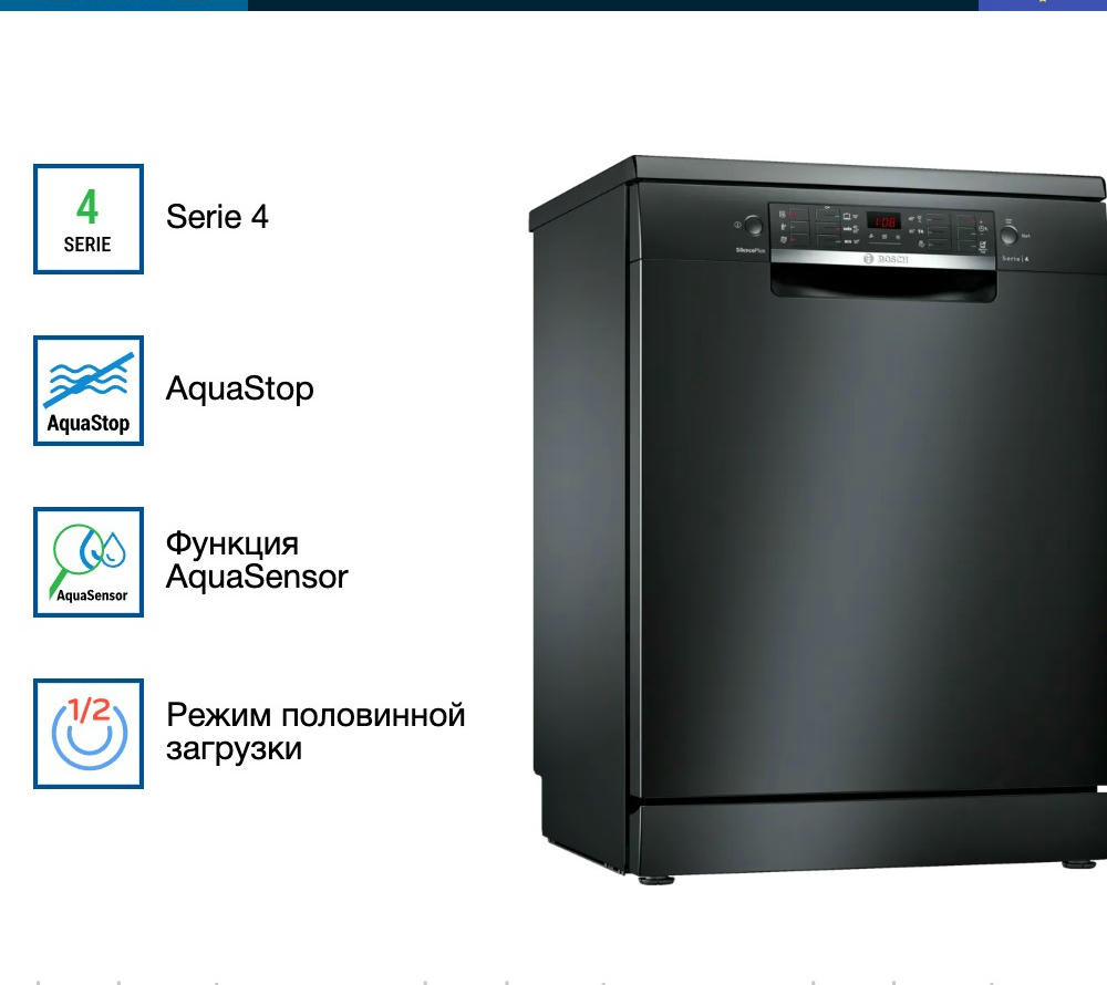 Посудомоечная машина Bosch SMS46NB01V, произведенная в Евросоюзе, представляет собой отдельно стоящую полноразмерную модель, которая отличается стильным черным цветом и современной серией Serie | 4. Это устройство оснащено инверторным двигателем EcoSilence Drive, который обеспечивает высокую производительность и низкий уровень шума, всего 44 дБ. Количество комплектов, которые может помыть эта модель, составляет 13. Она оборудована шестью стандартными программами и пятью температурными режимами, включая автоматическую, быструю, экономичную, интенсивную и специальную программу для стекла при 40 градусах. Также есть возможность предварительного ополаскивания и режима половинной загрузки.