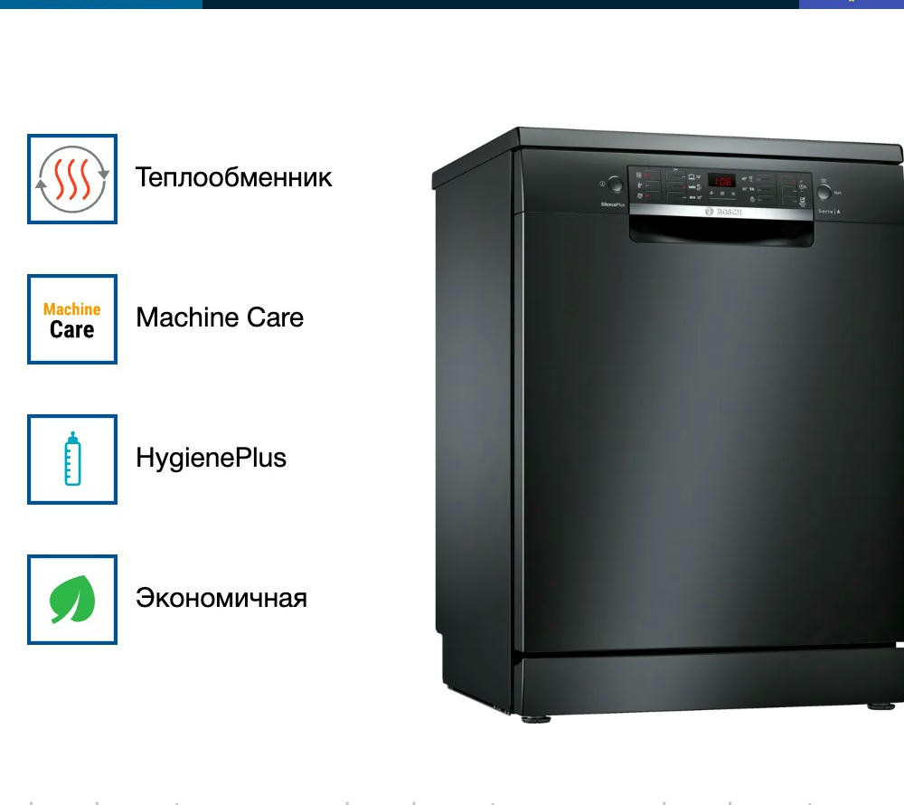 Машина оснащена функцией HygienePlus, которая обеспечивает более глубокую очистку посуды, и функцией Machine Care, предназначенной для ухода за самим устройством. Дополнительное полоскание и технология защиты стекла гарантируют отличное качество мытья и долгий срок службы вашей посуды. Сенсор чистоты воды AquaSensor автоматически контролирует качество воды во время работы машины, а система самоочистки фильтра обеспечивает ее безупречное функционирование.