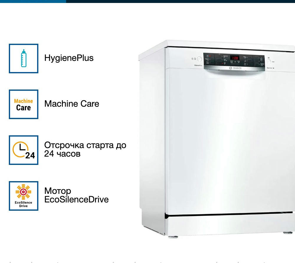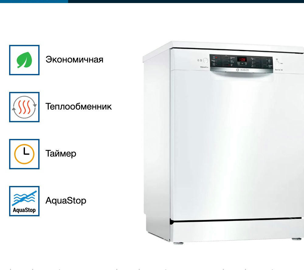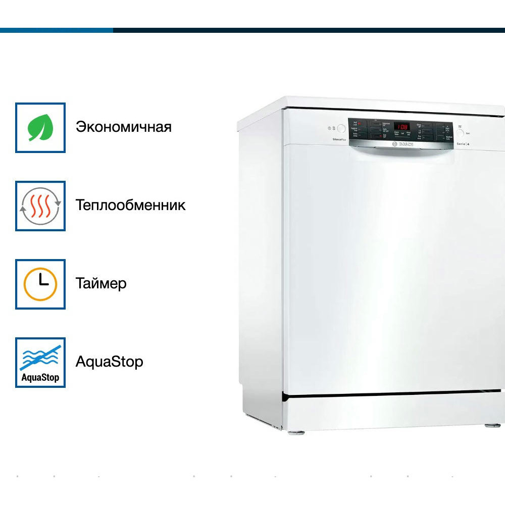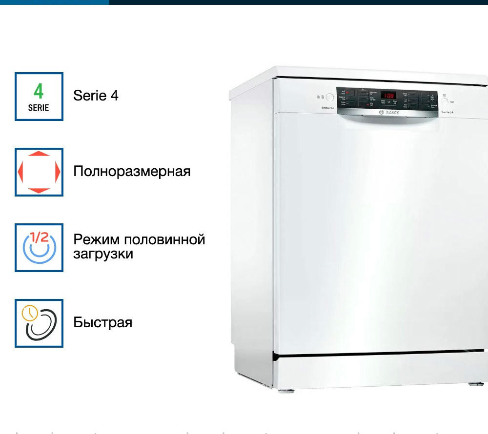 Посудомоечная машина Bosch SMS46NW01B выполнена в белом цвете и имеет открытую панель управления с кнопками и дисплеем. Таймер позволит вам отложить выполнение программы на любое удобное вам время до 24 часов. Блокировка панели защитит устройство от нежелательного вмешательства в процесс мойки.