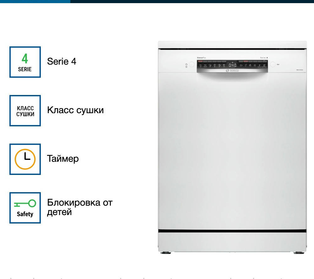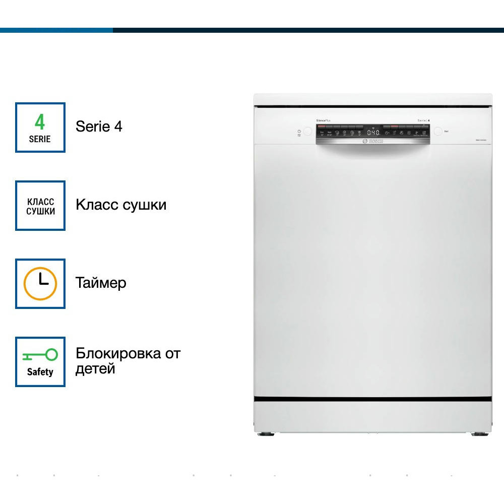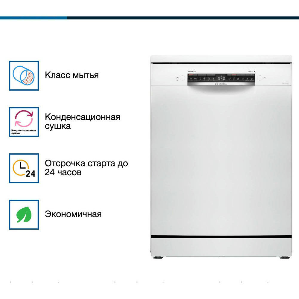 Посудомоечная машина Bosch SMS4ECW26M выполнена в белом цвете. Благодаря таймеру вы можете отложить запуск программы на определенное время. Бережный уход за деликатной посудой обеспечит технология защиты стекла. Безопасность использования гарантирует защита от протечек.