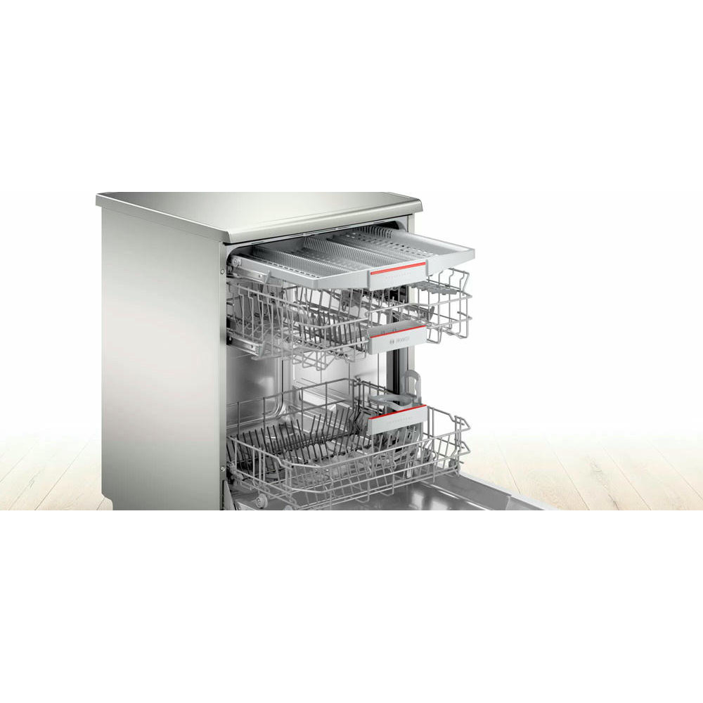 Посудомоечная машина Bosch SMS4HMB60T выполнена в черном цвете с ручкой цвета нержавеющей стали. Мотор EcoSilence Drive обеспечивает невысокий уровень шума в 44 и дБ гарантирует тихую работу. Благодаря таймеру вы можете отсрочить старт от 1 до 24 часов. Полное растворение таблетки достигается с помощью системы DosageAssist, позволяя добиться наиболее оптимальных результатов мытья.