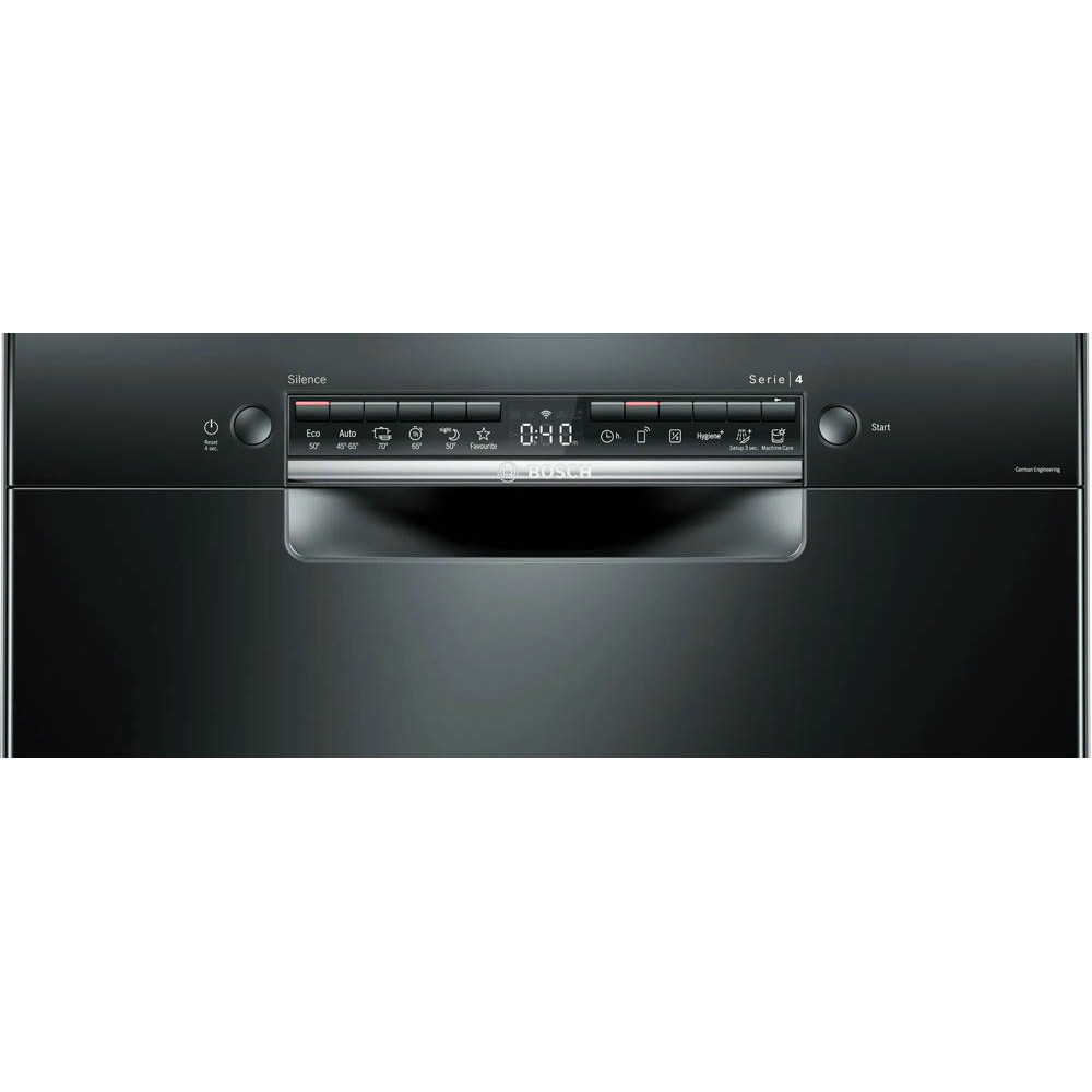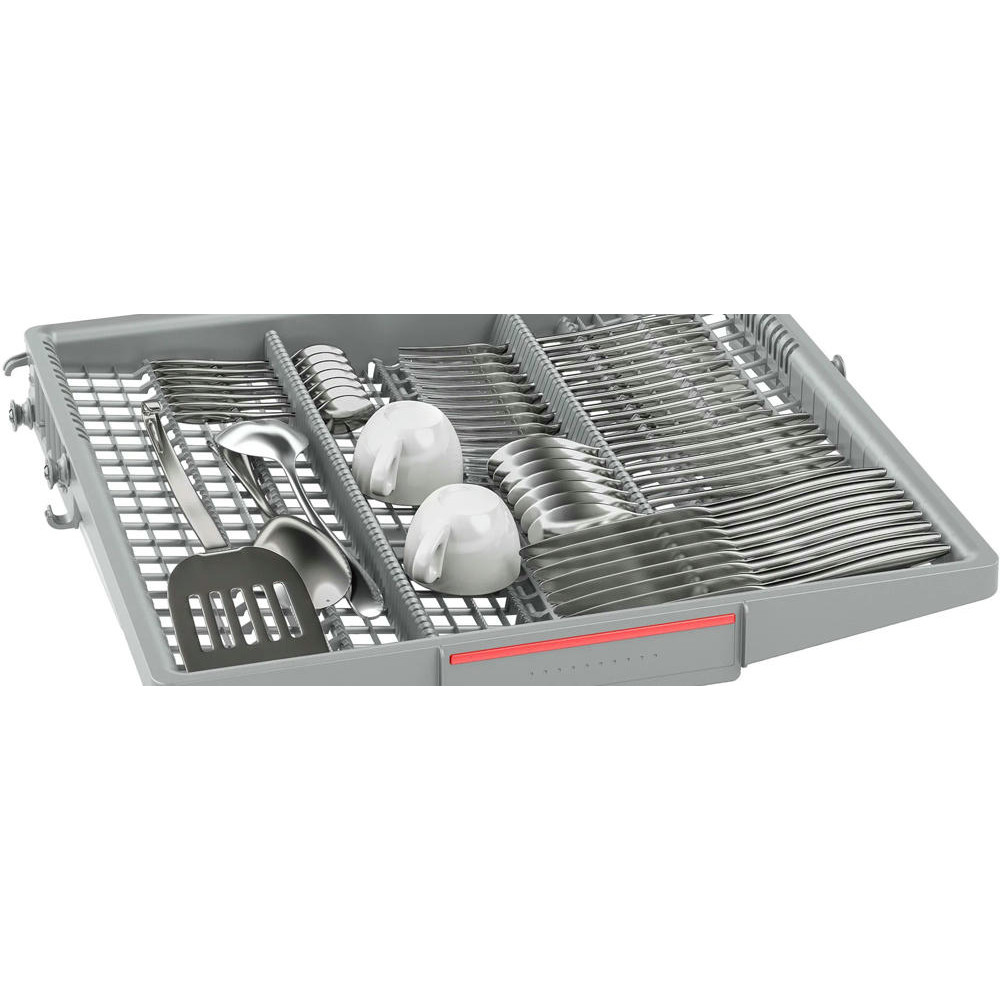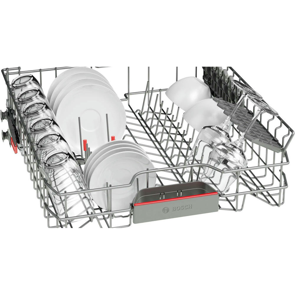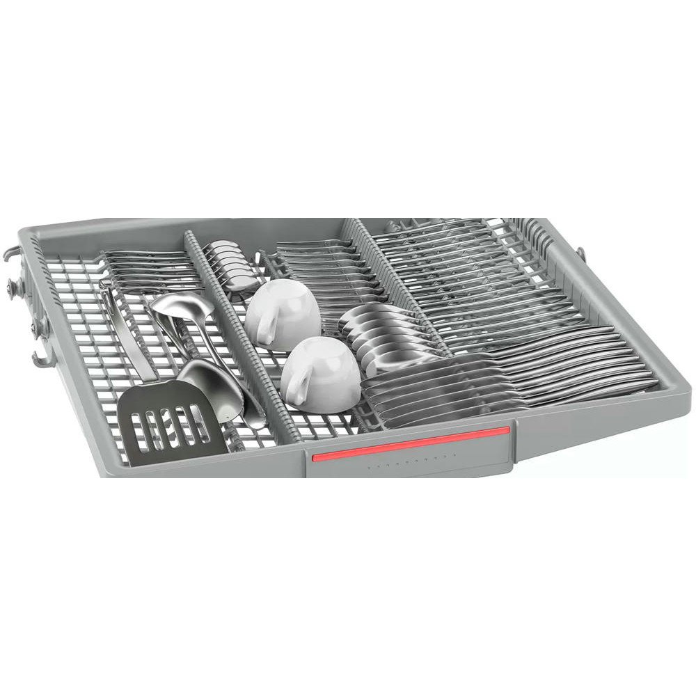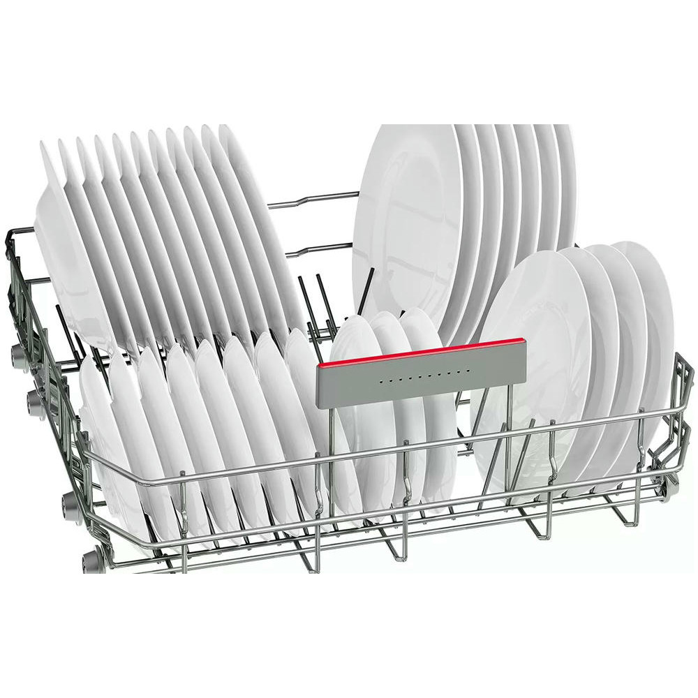 Bosch SMS4HMC01R помимо двух стандартных коробов имеет лоток для столовых приборов. Технология Hygiene Dry основана на применении теплообменника. В данном случае сушка происходит при закрытой дверце, а значит исключает попадание внутрь камеры пыли или бактерий снаружи. С функцией Home Connect вы можете, при помощи виртуальных помощников (Маруся или Алиса) управлять прибором голосовыми командами.