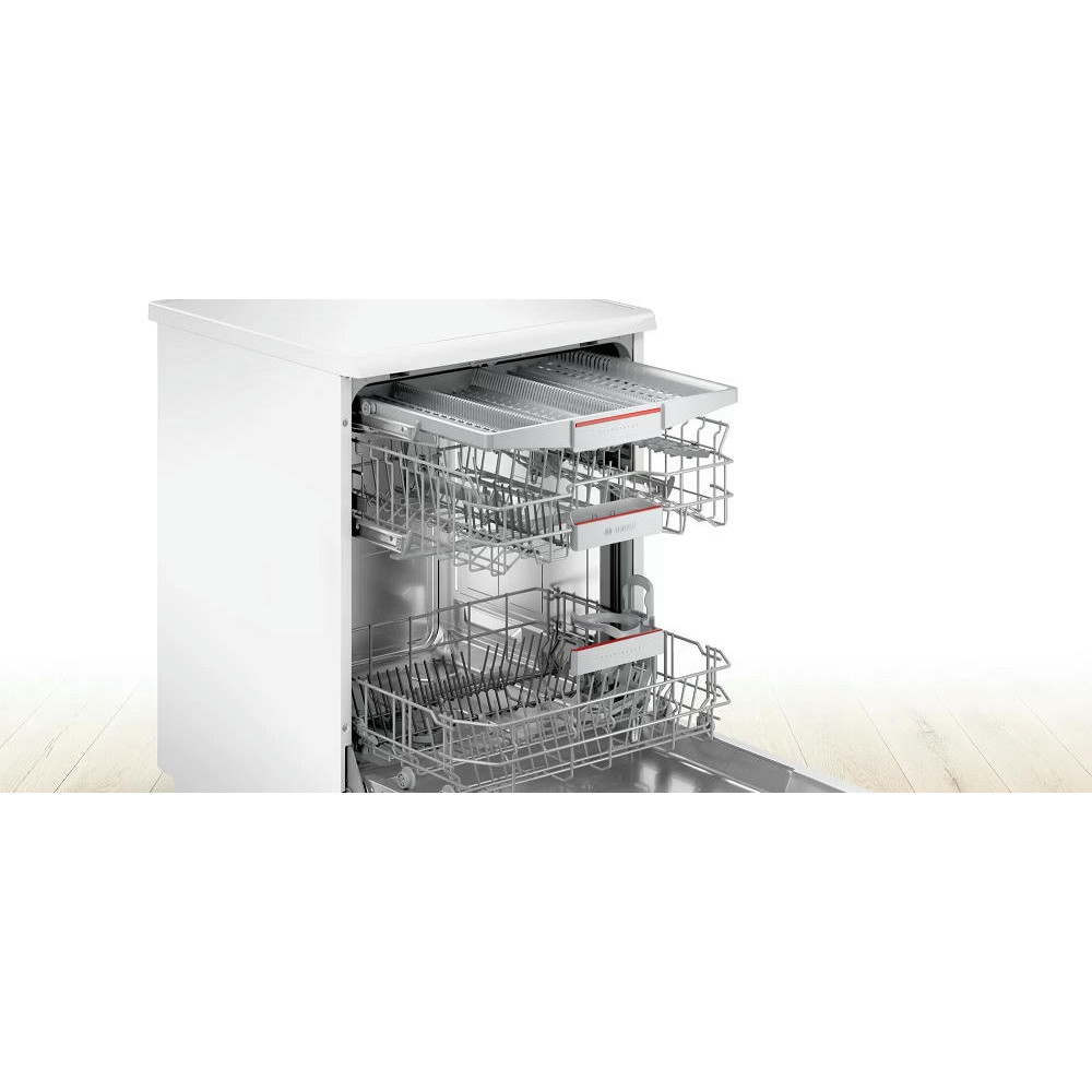 Отдельностоящая посудомоечная машина Bosch SMS4HMW1FR с программой шумоподавления и дистанционным интеллектуальным управлением через приложение Home connect. Когда нужно создать особо тихую обстановку дома, чтобы сосредоточиться на повседневных делах, можно активировать функцию «Silence on demand» в приложении Home Connect, и при необходимости она сокращает звуки в посудомоечной машине. Уровень шума снижается до минимума на 30 минут в любое время за счет активной паузы, пока посудомоечная машина продолжает работать.