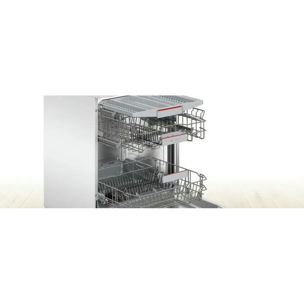 Модель оснащена системой Home Connect, которая позволяет управлять машиной через приложение на смартфоне. Также есть возможность отсрочки запуска и удаленного запуска. Вместительность машины составляет 14 комплектов посуды, для размещения которых предусмотрено три корзины. Система AquaStop и полная защита от протечек гарантируют безопасность использования прибора. Для семей с маленькими детьми предусмотрена блокировка от детей. Модель относится к классу энергопотребления D (новый — G), что говорит о ее экономичности. Расход воды на цикл составляет всего 9 литров. Уровень шума при работе не превышает 46 дБ, что позволяет использовать машину даже ночью, не беспокоя домочадцев.