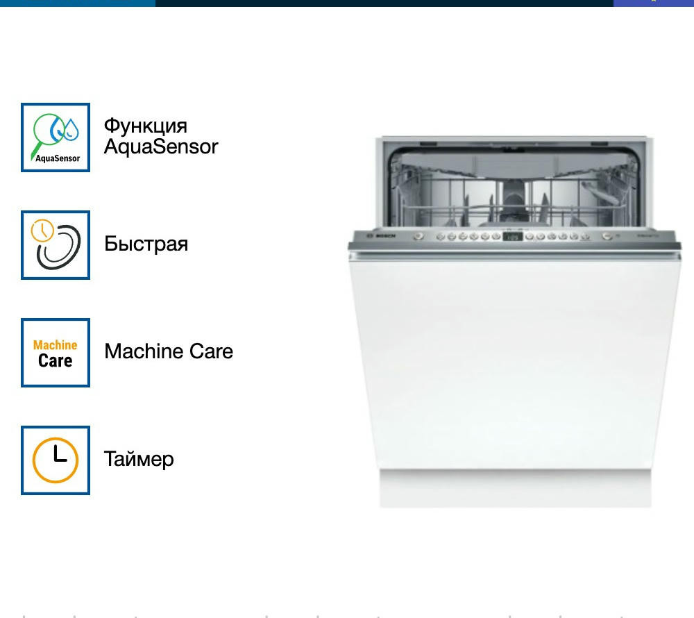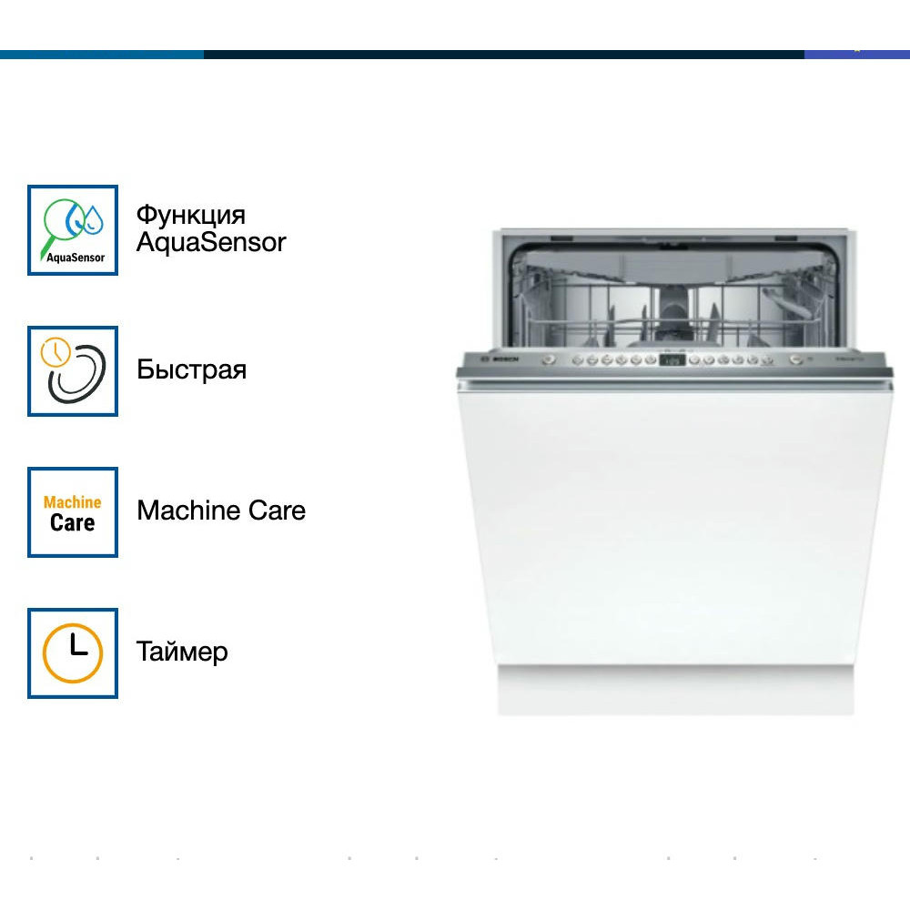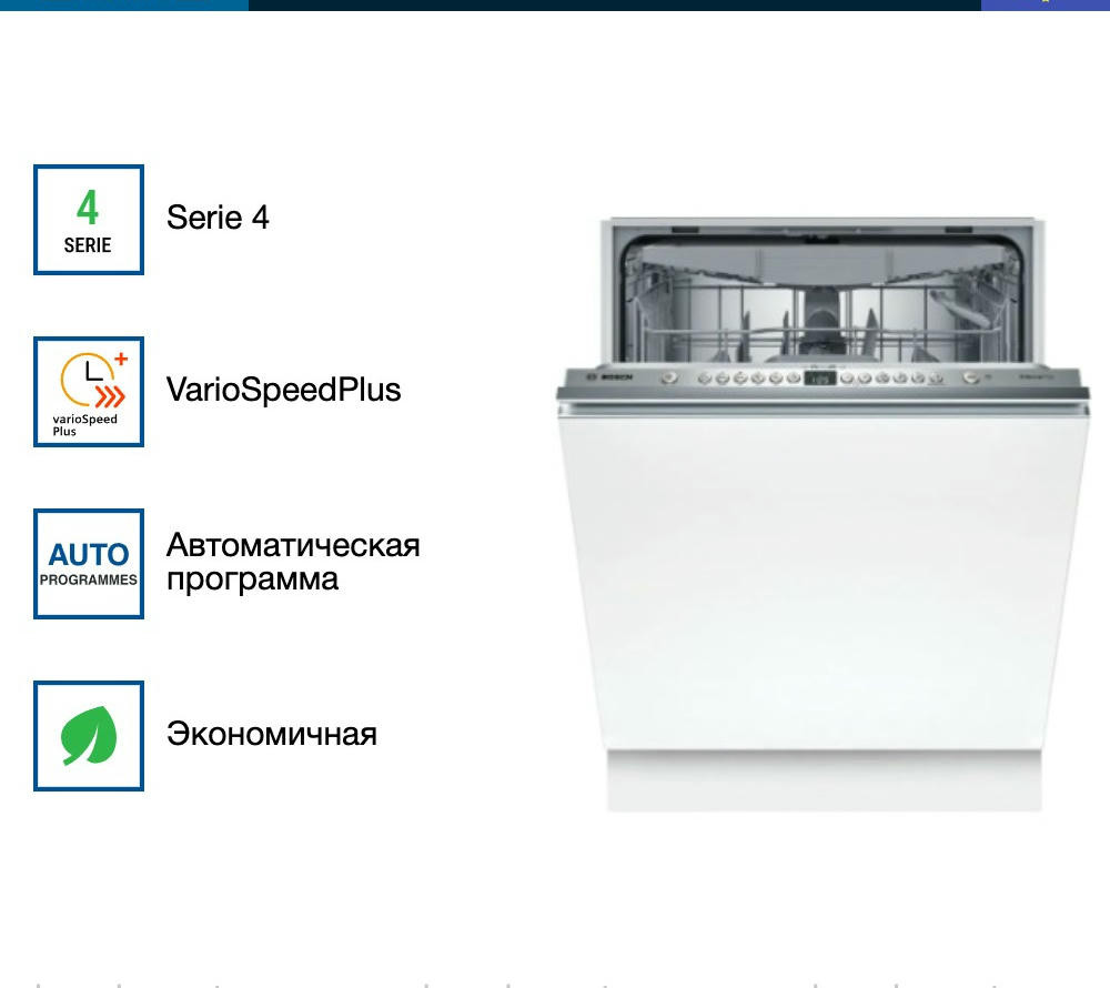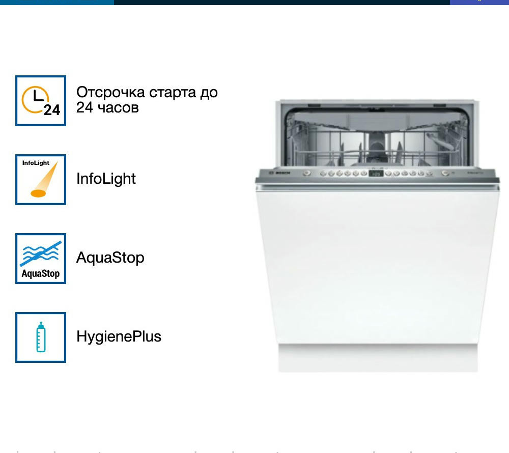 Посудомоечная машина Bosch SMV46KX04E оснащена индикатором InfoLight, он отображается на полу во время работу устройства. Вместимость до 13 комплектов посуды, подойдет для большой семьи. Инверторный двигатель Silence Drive сохранит тишину дома и сэкономит электроэнергию.