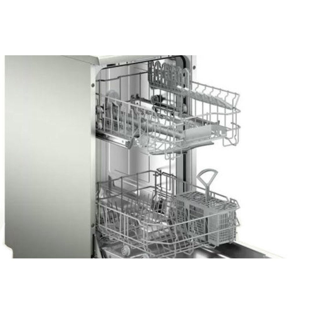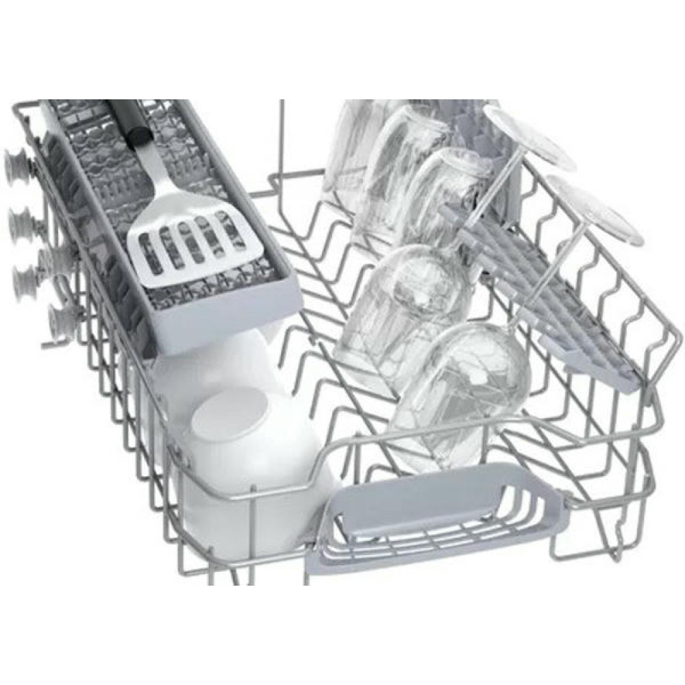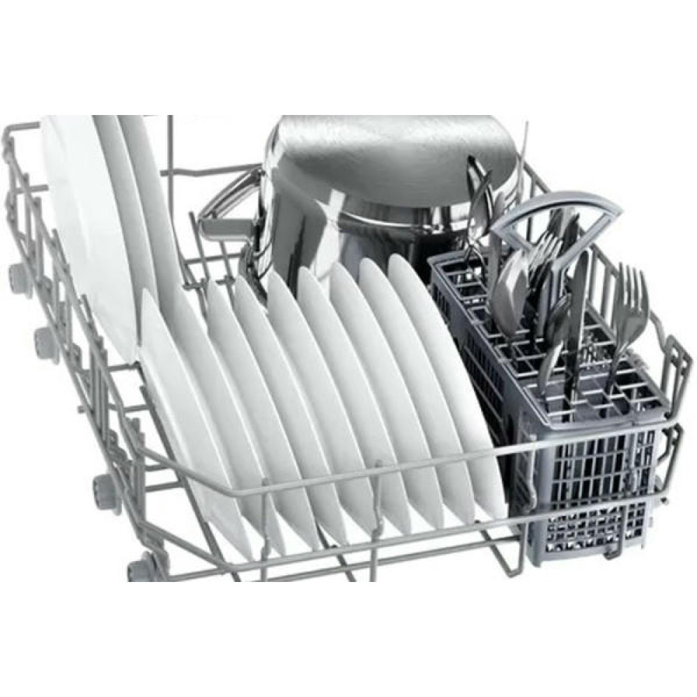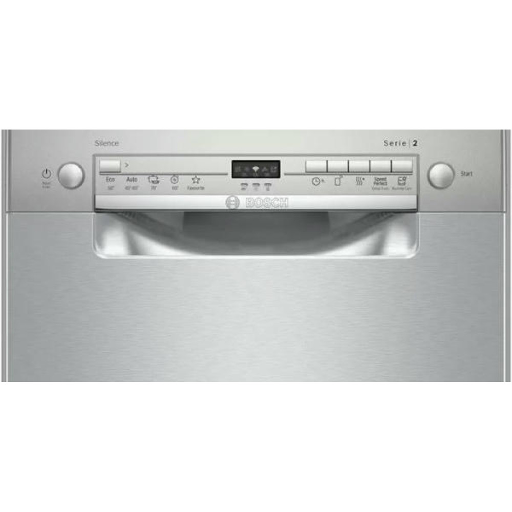 Посудомоечная машина BOSCH SPS 2IKI04 E выполнена в серебристом цветовом решении. Данный прибор вмещает в себя 9 комплектов посуды. Ширина данного устройства 45 см, что позволит вместить его на любую кухню. Дисплей облегчит эксплуатацию посудомойки.