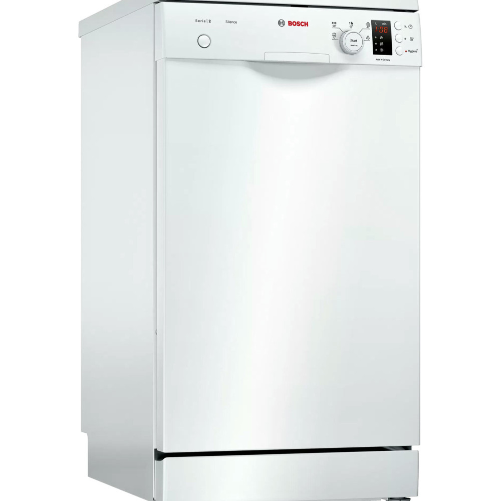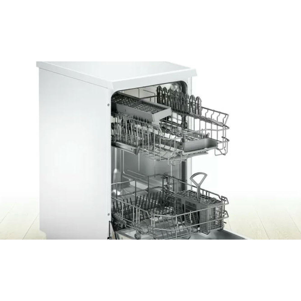 Посудомоечная машина Bosch SPS 25DW04 R шириной всего 45 см подойдет для небольших помещений. Технология мытья Duo Power работает по всему пространству камеры, очищая посуду в самых труднодоступных местах. Функция Glass Protection автоматически умягчает воду, чтобы уход за стеклом и фарфором всегда был бережным. Двигатель EcoSilence Drive работает тихо, что позволяет вам спокойно отдыхать в вечернее время суток.