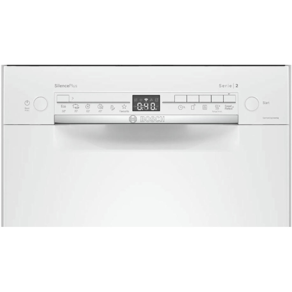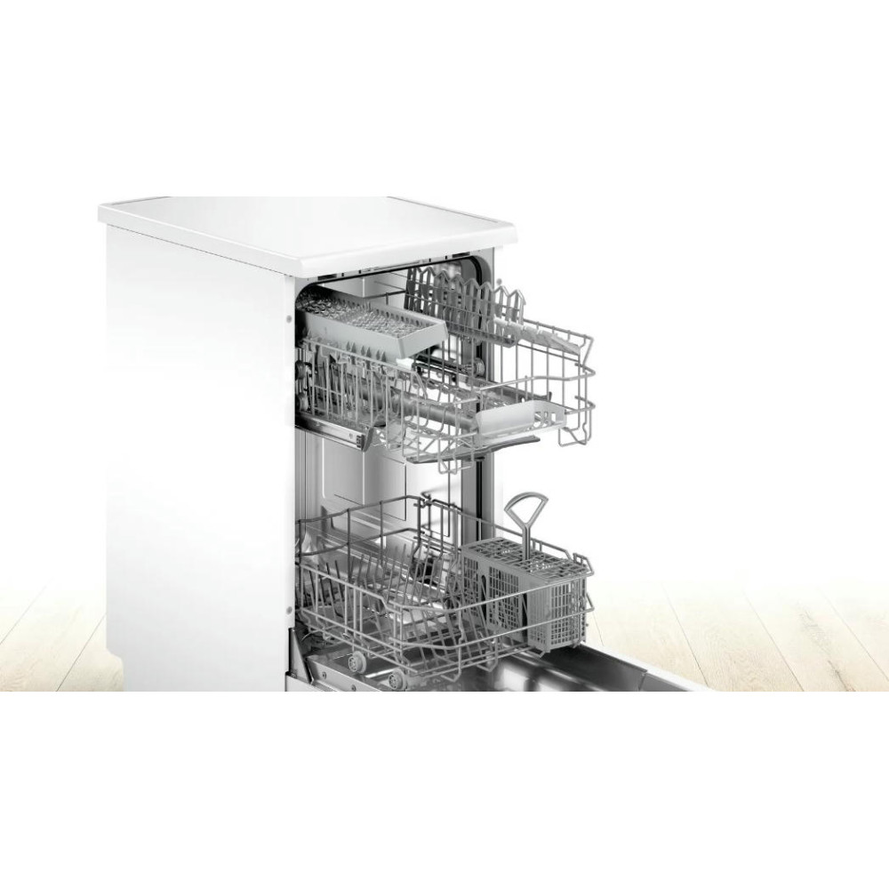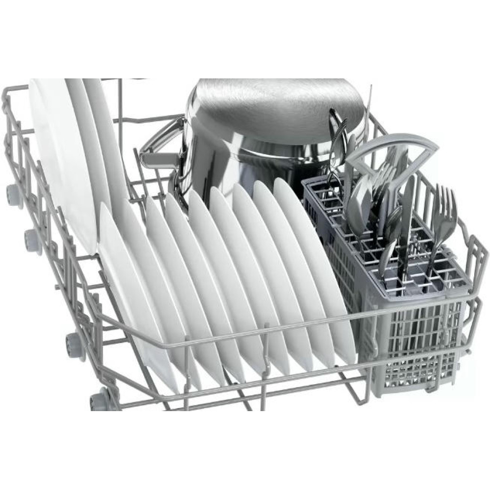 Узкая посудомоечная машина Bosch SPS2HKW1DR специально создана для небольших помещений. Инверторный двигатель EcoSilence Drive обеспечит тихую работу устройства, поэтому вы и ваши близкие сможете отдыхать в вечернее время суток.