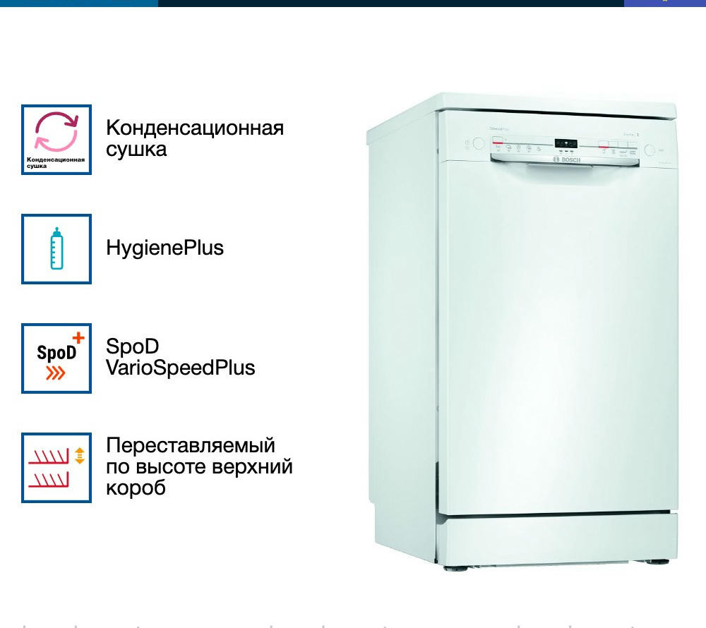 Узкая посудомоечная машина SPS2IKW1BR оснащена технологией HygienePlus – в конце мойки программа ополаскивает посуду водой 70 градусов. С технологией Home Connect вы можете настраивать и запускать мойку прямо со смартфона. Активируйте отправку уведомлений, чтобы всегда знать, чем занимается ваше устройство.