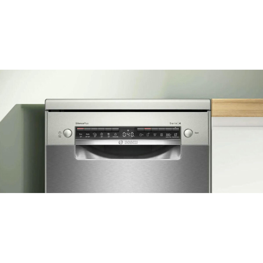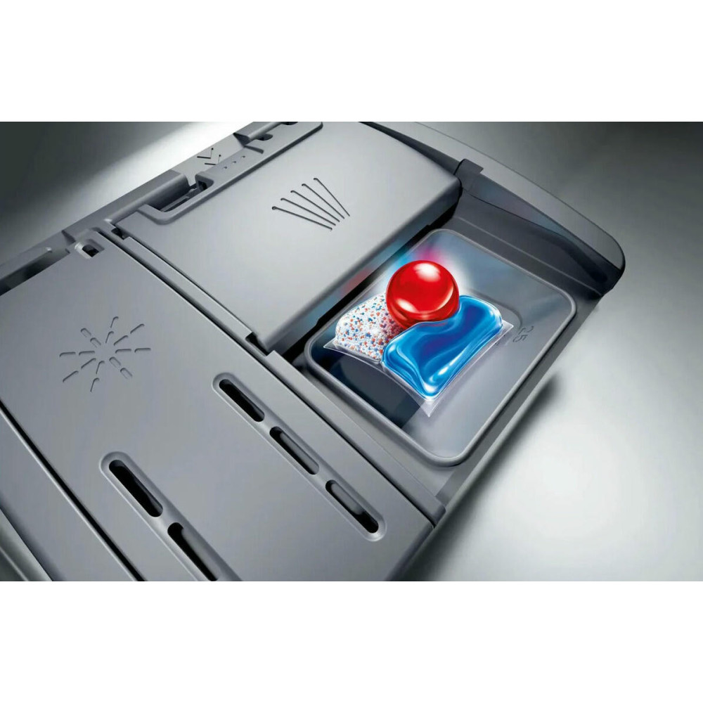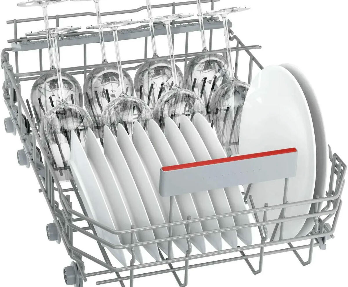 Посудомоечная машина Bosch SPS4HMI49E оснащена функцией IntensiveZone для интенсивной очистки сложно отмываемой посуды, а также функцией SpeedPerfectPlus для ускоренного мытья. Кроме того, в машине предусмотрена программа Machine Care для ухода за самим устройством. Дополнительное полоскание гарантирует идеальную чистоту и блеск посуды после каждого цикла мытья. Управление машиной осуществляется через открытую панель с кнопками и дисплеем. С помощью функции Home Connect можно запустить машину дистанционно через приложение на смартфоне. Также в наличии индикаторы наличия ополаскивателя и соли, а также таймер отсрочки запуска от 1 до 24 часов. Внутри машины три корзины для размещения посуды, верхний из которых можно переставить по высоте. В нижнем коробе предусмотрены две полки для чашек и две складные направляющие для тарелок. Система AquaStop и полная защита от протечек обеспечивают безопасность использования, а блокировка от детей предотвращает случайный запуск.