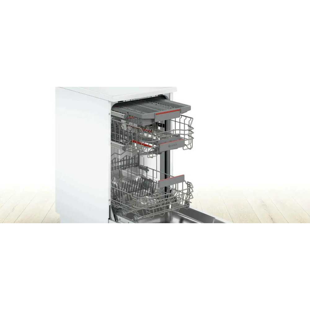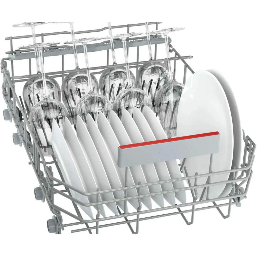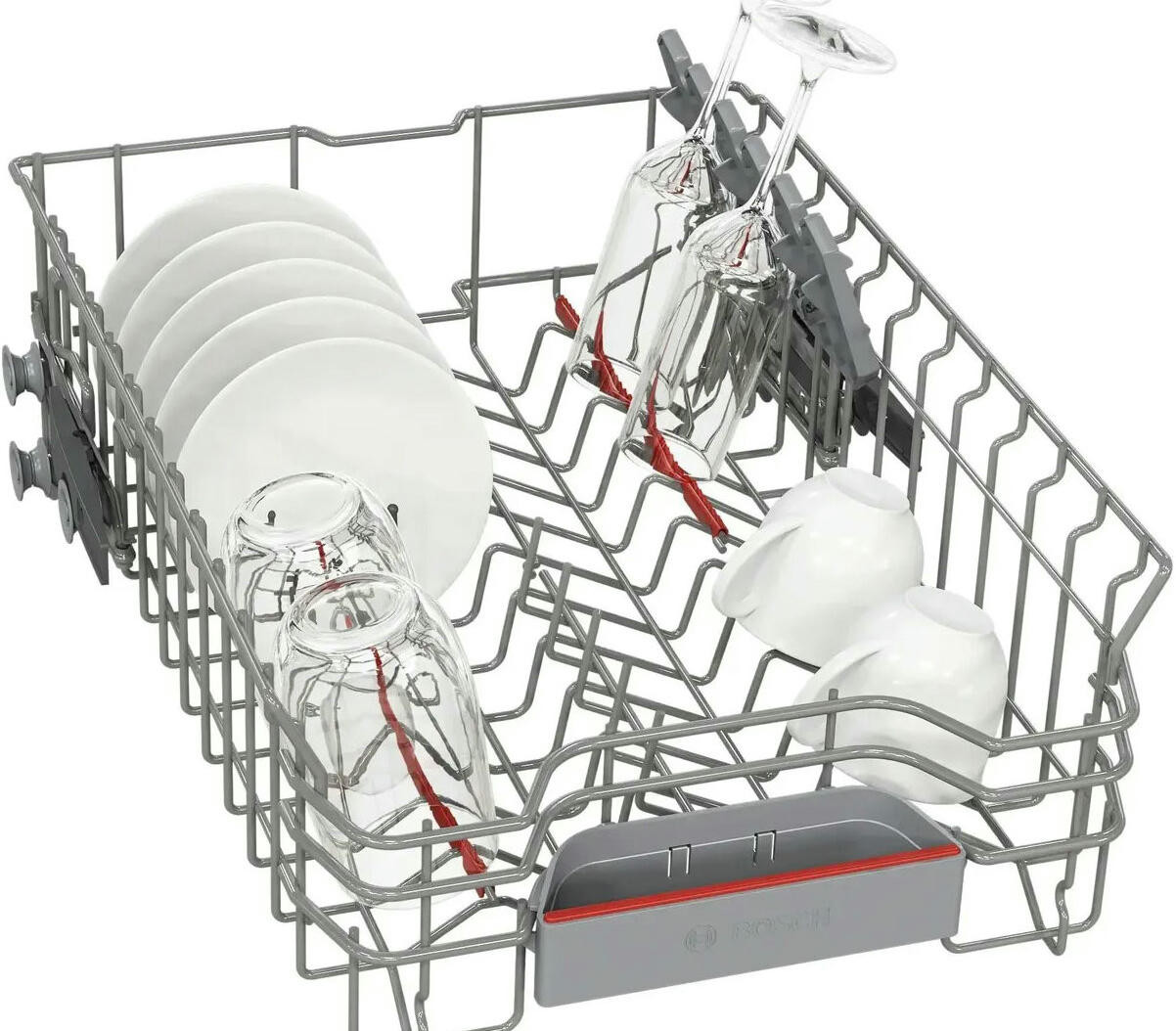 Посудомоечная машина Bosch SPS4HMI49E оснащена функцией IntensiveZone для интенсивной очистки сложно отмываемой посуды, а также функцией SpeedPerfectPlus для ускоренного мытья. Кроме того, в машине предусмотрена программа Machine Care для ухода за самим устройством. Дополнительное полоскание гарантирует идеальную чистоту и блеск посуды после каждого цикла мытья. Управление машиной осуществляется через открытую панель с кнопками и дисплеем. С помощью функции Home Connect можно запустить машину дистанционно через приложение на смартфоне. Также в наличии индикаторы наличия ополаскивателя и соли, а также таймер отсрочки запуска от 1 до 24 часов. Внутри машины три корзины для размещения посуды, верхний из которых можно переставить по высоте. В нижнем коробе предусмотрены две полки для чашек и две складные направляющие для тарелок. Система AquaStop и полная защита от протечек обеспечивают безопасность использования, а блокировка от детей предотвращает случайный запуск.
