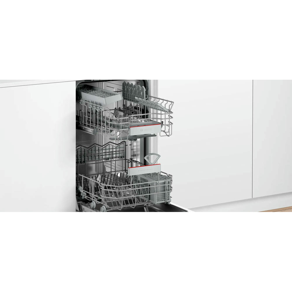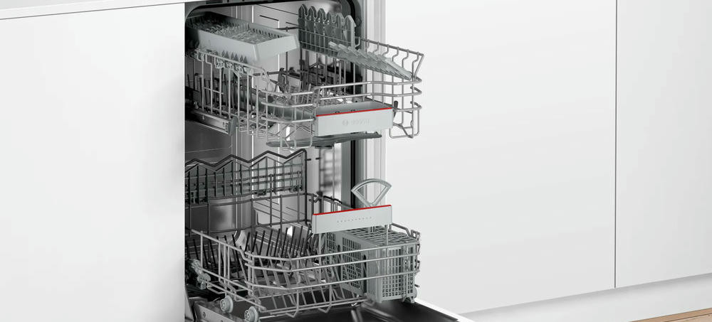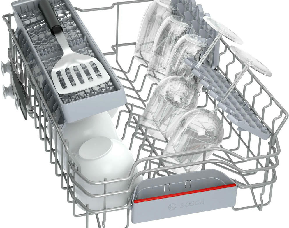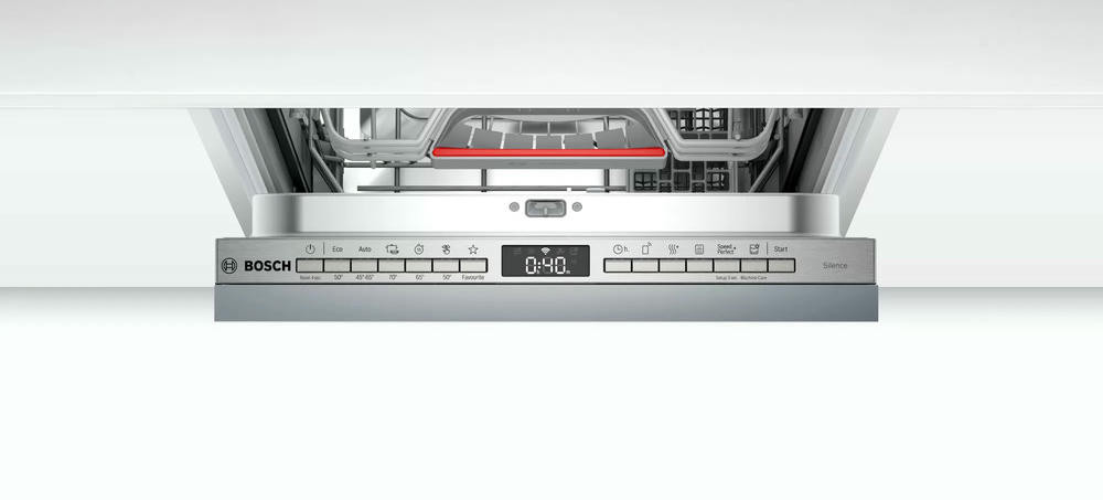 Посудомоечная машина Bosch SPV4HKX53E оснащена Info Light — это красная точка, она обозначает, что идет процесс мытья посуды. Home Connect поможет отслеживать состояние вашего устройства или включить программу прямо со смартфона. Система AquaStop обеспечит надежную защиту от любых протечек.