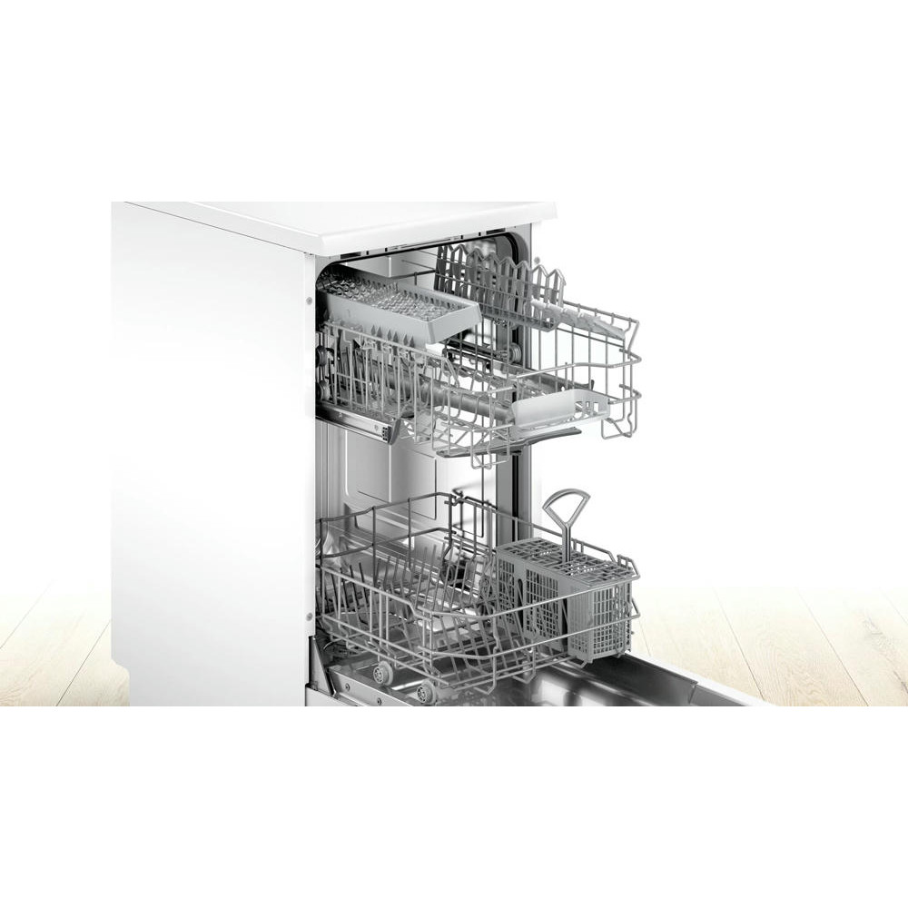 Посудомоечная машина BOSCH SRS2IKW4CR — это узкая отдельностоящая модель которая, благодаря своим габаритам, экономит место на кухне. Система AquaStop — это постоянная защита от любых протечек, как внутри прибора, так и в случае разрыва заливного шланга.