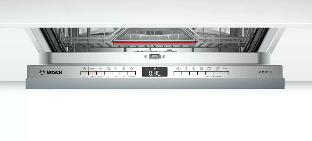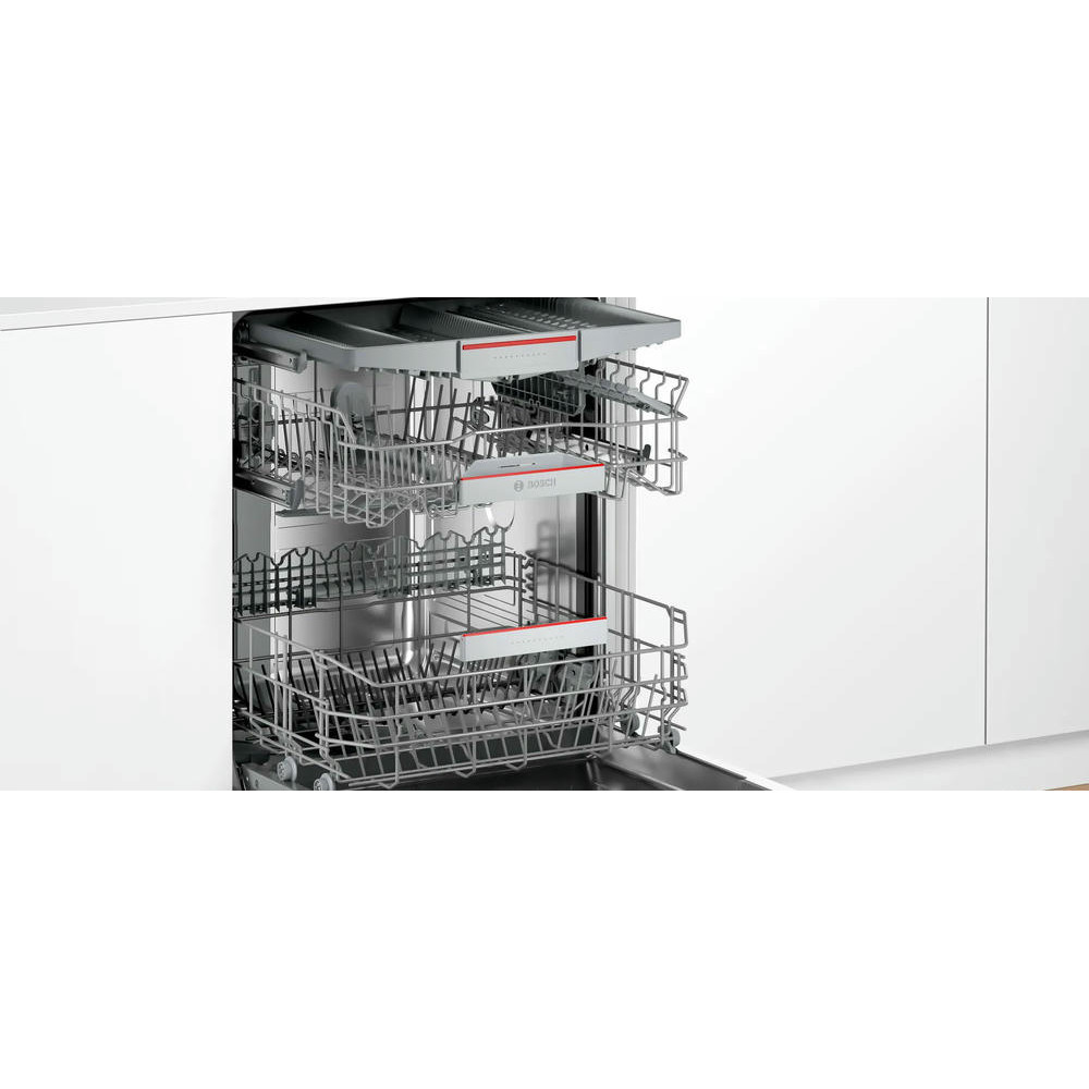 Встраиваемая посудомоечная машина Bosch SBH4HCX48E оснащена функцией Home Connect теперь вы можете дистанционно управлять с вашего смартфона вносить изменения и отслеживать состояние устройства. AquaStop - это полная защита от любых протечек. Третий уровень загрузки предназначен специально для столовых приборов.
