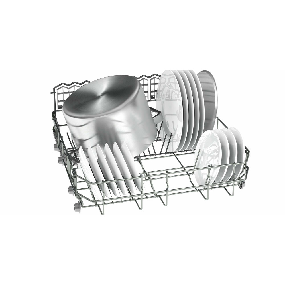Посудомоечная машина Bosch SBV45FX01R обладает функцией IntensiveZone, благодаря которой даже сильно загрязнённая посуда станет чистой. Система ActiveWater подаёт струи воды определённой направленности, что позволяет промыть труднодоступные места. Во время работы ночной программы шум прибора снижается и не потревожит ваш сон.