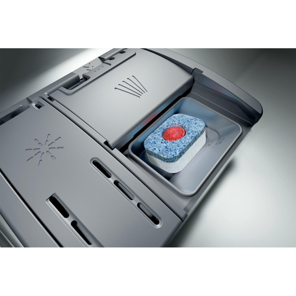 Встраиваемая посудомоечная машина Bosch SGI4IMS60T легко перемоет до 13 комплектов посуды, тратя при этом всего лишь 9.5 л воды и 940 Вт*ч электроэнергии. Особенностью представленной модели стал вместительный выдвижной ящик VarioDrawer, который позволил отказаться от отдельной корзины для столовых приборов, оптимально используя свободное пространство в камере. Благодаря системе регулировки Rackmatic вы сможете оптимизировать положение корзин по высоте исходя из ваших индивидуальных потребностей и размера кухонной утвари. Функционирует прибор довольно тихо благодаря долговечному инверторному мотору. Возможности устройства представлены шестью автопрограммами мойки, включая экономичный, деликатный и быстрый циклы. Безопасное использование посудомоечной машины достигается за счет частичной защиты корпуса от протечек. По окончании цикла мойки устройство оповестит вас звуковым сигналом.