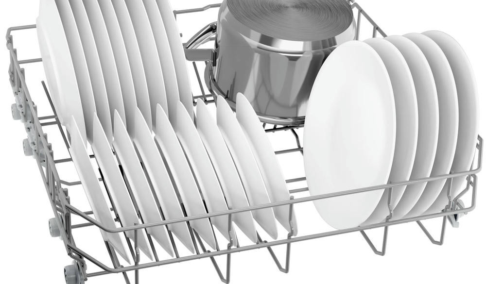 Устройство оснащено индикаторами наличия соли и ополаскивателя, то есть в случае отсутствия данных веществ вы увидите красный мигающий маячок на приборной панели. Четыре автоматических программы созданы для вашего удобства и экономии времени. Отдельное внимание заслуживают следующие режимы: HygienePlus и экстрасушка. Аппарат сам настраивает комфортную жесткость воды, что позволяет сократить ваши траты на дополнительные реагенты. Встроенный фильтр обладает функцией самоочистки. Блокировка от детей не даст ребенку внести свои изменения в настройки системы. За безопасную эксплуатацию отвечает опция AquaStop, которая при возникновении аварийной ситуации экстренно прекратит подачу воды в прибор.