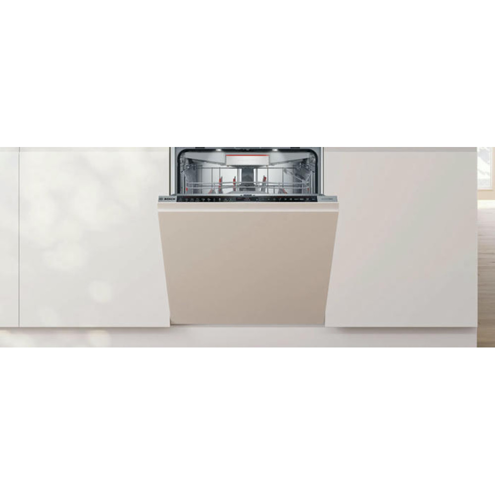 Встраиваемая посудомоечная машина Bosch SMD8YC801E - это современное и практичное решение для комфортной и эффективной работы на кухне. Конденсационная система сушки с вместимостью 14 комплектов посуды делает идеальным вариантом для больших семей или для тех, кто часто принимает гостей. Дизайн машины привлекает своей строгостью и минимализмом. Черная панель управления идеально вписывается в любой интерьер, а удобное управление сенсорными кнопками делает процесс использования машины максимально простым и удобным. Внутренняя подсветка обеспечивает хорошую видимость, что упрощает загрузку и выгрузку посуды. Машина оборудована восемью стандартными программами, включая автоматическую, быструю, экономическую, интенсивную, деликатную и специальную программу для стекла. Также есть функция предварительного ополаскивания и режим половинной загрузки. Это позволяет оптимизировать использование машины в зависимости от типа и количества посуды, а также от степени ее загрязнения.
