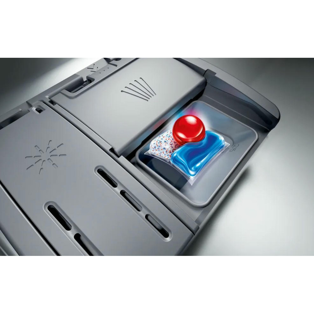 Благодаря инверторному двигателю EcoSilence Drive, машина работает очень тихо, создавая уровень шума всего 48 дБ. Модель оснащена шестью стандартными программами и пятью температурными режимами, включая быструю, экономичную, интенсивную, деликатную и предварительное ополаскивание. Дополнительная функция HygienePlus гарантирует гигиеническую чистоту посуды, а VarioSpeedPlus значительно сокращает время мойки. Посудомоечная машина оснащена удобной открытой панелью управления с сенсорными кнопками и дисплеем.