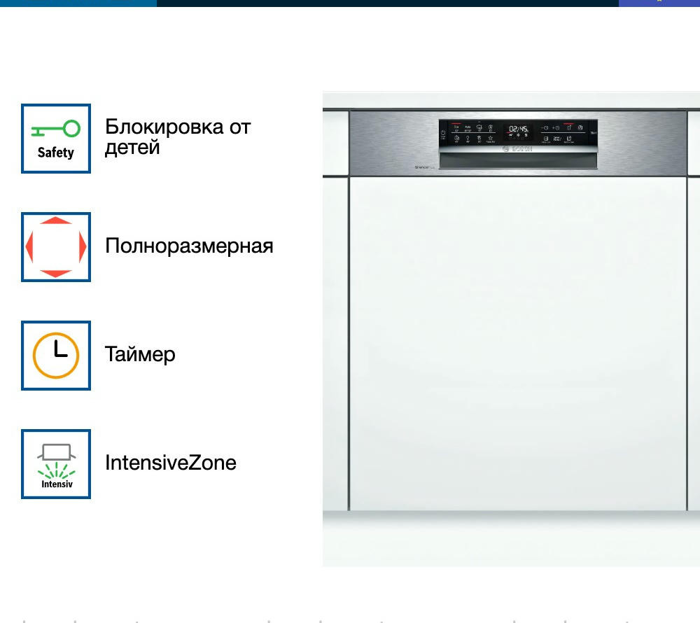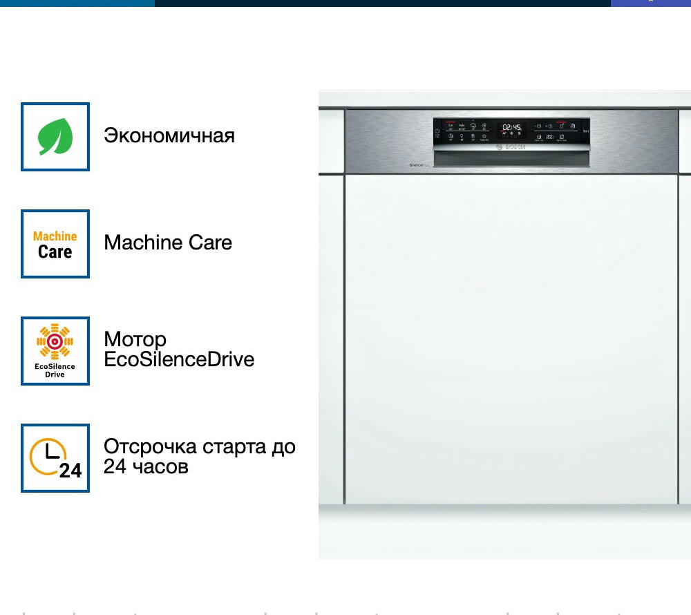 Машина частично встраиваемая, что позволяет гармонично вписать ее в любой интерьер кухни. Она полноразмерная, что обеспечивает возможность одновременной загрузки до 13 комплектов посуды. Это делает ее идеальным выбором для больших семей или для тех, кто любит устраивать большие вечеринки. Панель управления выполнена в серебристом цвете, что придает ей современный и стильный вид.