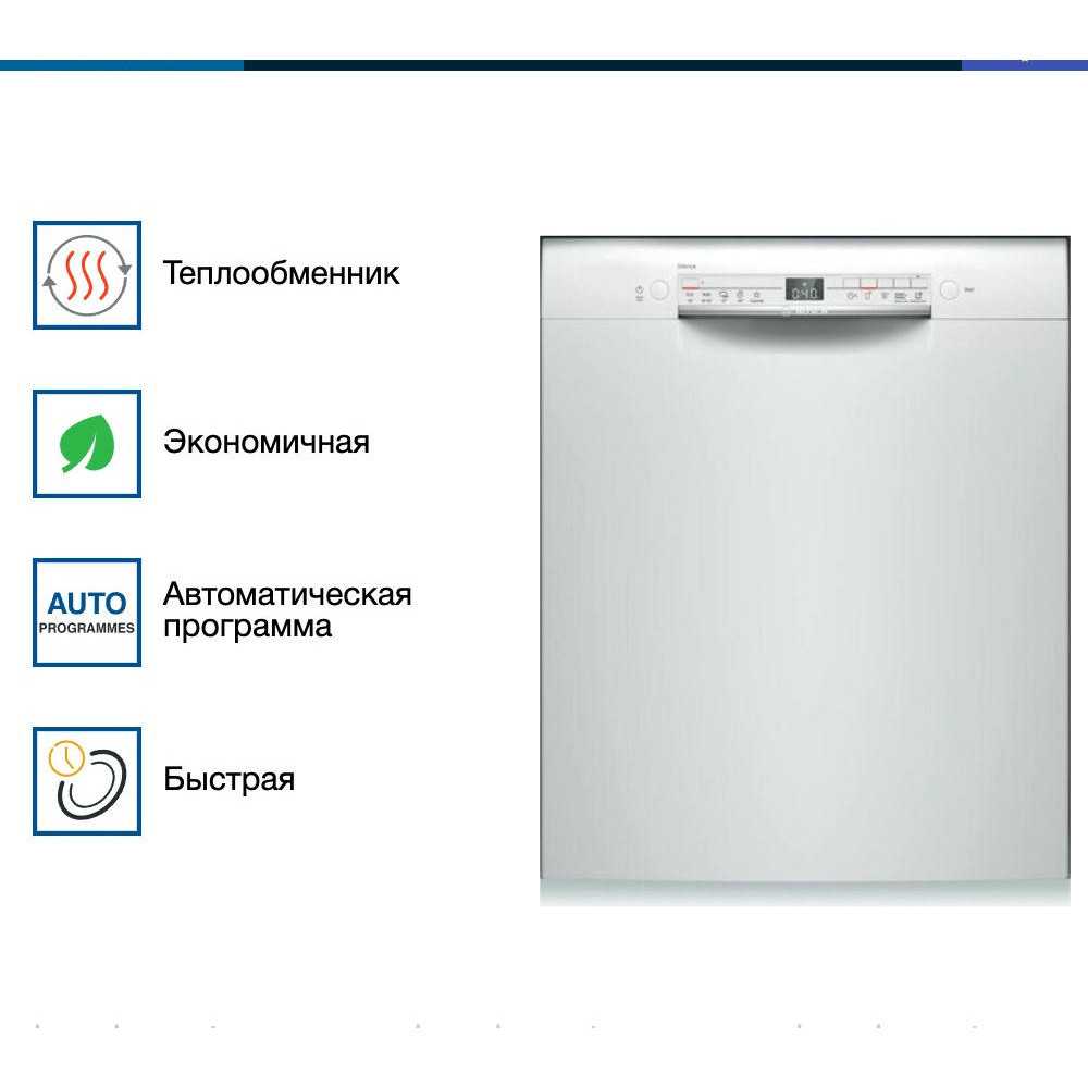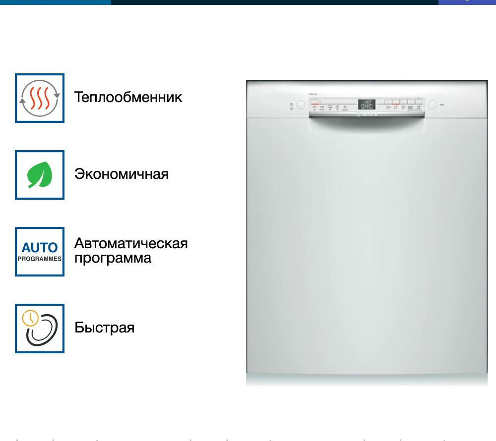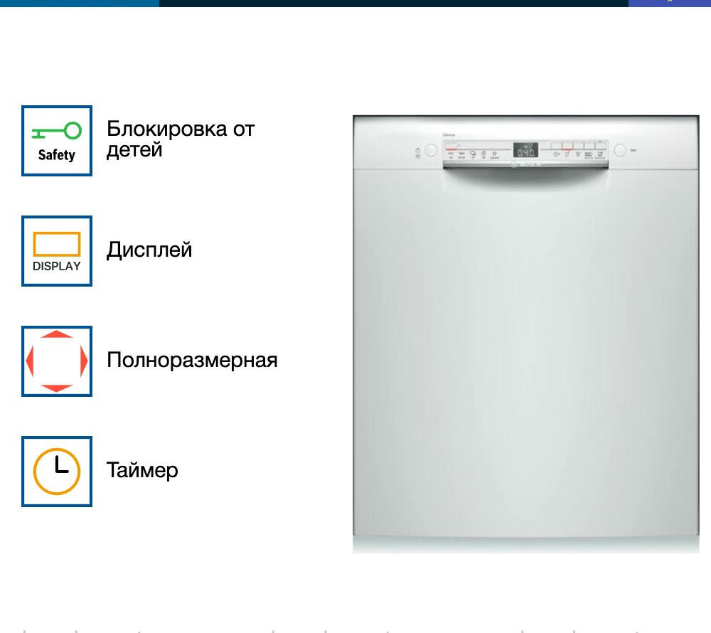 Посудомоечная машина Bosch SMU 2HVW20S — прибор с белой панелью управления. Устройство вмещает в себя 13 комплектов посуды. Таймер отсрочки представляет собой достаточно простое устройство, которое позволяет отложить начало выполнения программы на определенное время, что существенно сэкономит затраты на энергоресурсы.
