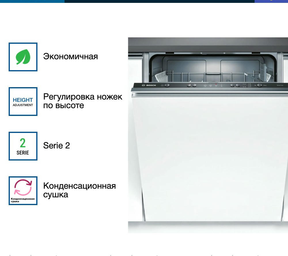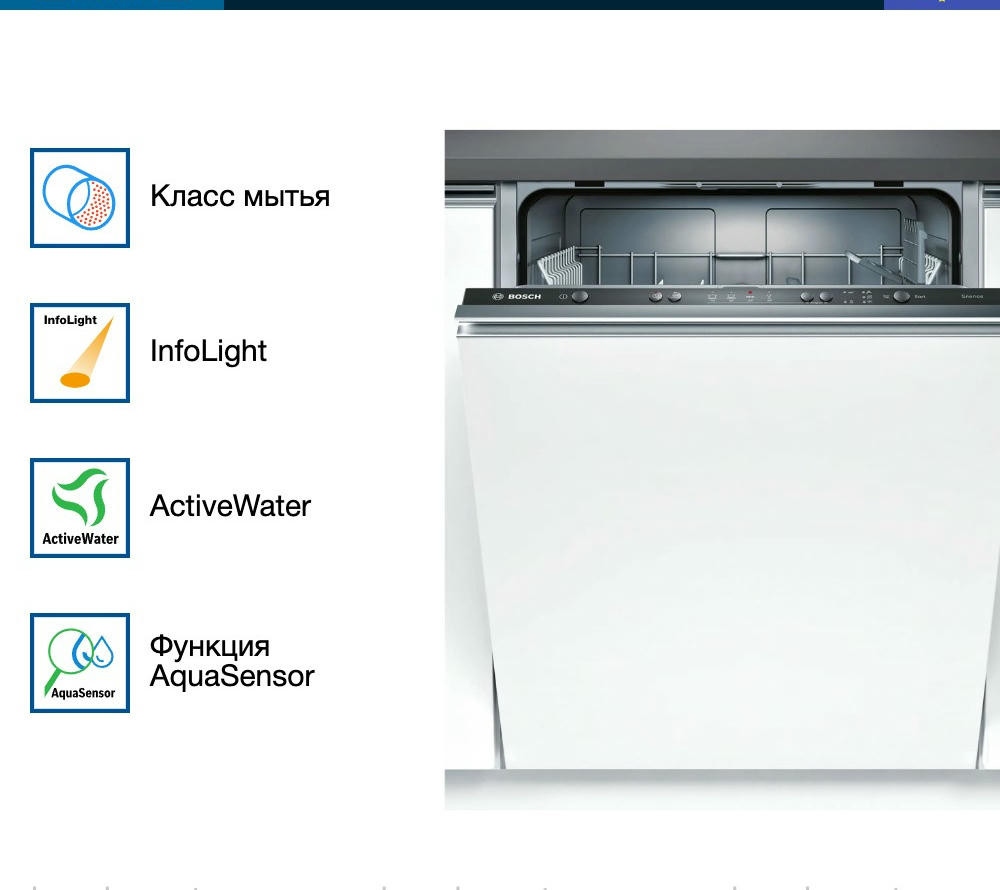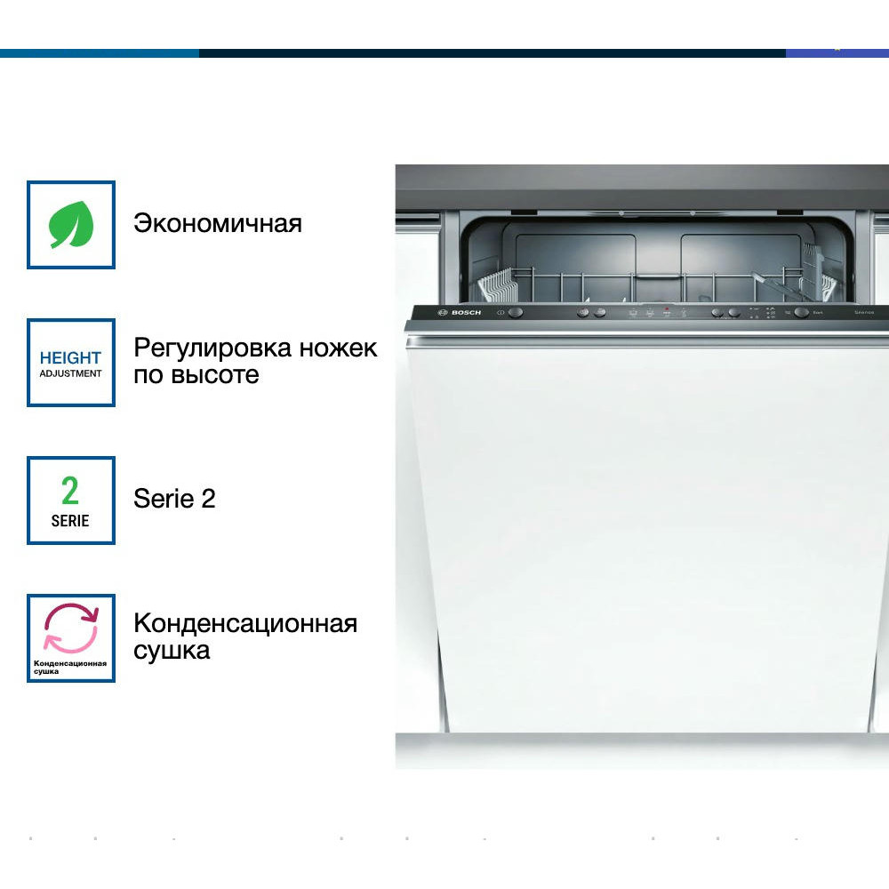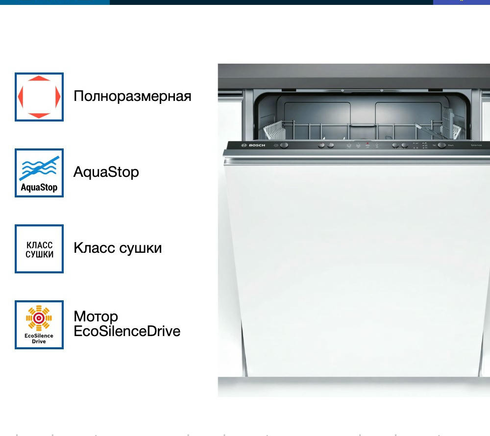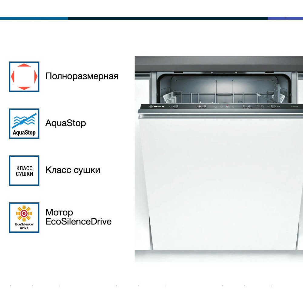 Встраиваемая посудомоечная машина Bosch SMV24AX02E оснащена программой для стекла, которая обеспечит бережный уход за хрупкой посудой. Инверторный двигатель EcoSilence Drive отличается долговечностью и тихой работой. Система AquaStop защитит устройство от внезапных протечек.