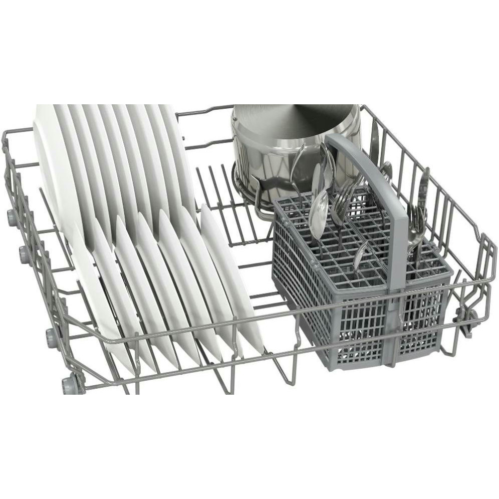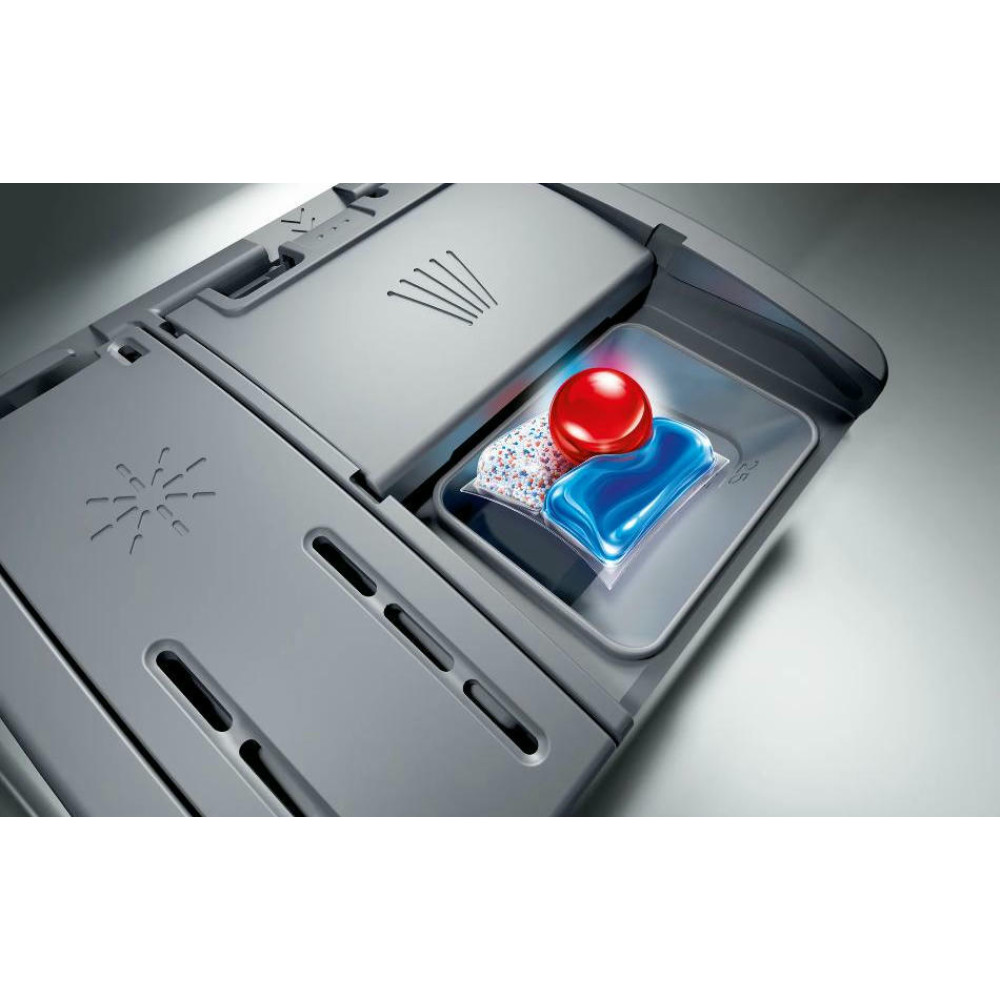Встраиваемая посудомоечная машина Bosch SMV24AX04E — это высококачественное устройство, произведенное в Евросоюзе, предназначенное для полноразмерного использования. Она обладает черной панелью управления, которая идеально впишется в любой современный интерьер кухни. Дизайн этой модели подчеркивает ее функциональность и технологичность, а также гармонично сочетается с другими элементами кухонного оборудования. Особенностью машины является наличие инверторного двигателя EcoSilence Drive, который обеспечивает тихую и эффективную работу. Этот двигатель значительно улучшает качество мытья посуды и при этом экономит энергию. Встроенный теплообменник обеспечивает высококачественную сушку посуды, а система SpeedPerfectPlus позволяет ускорить процесс мытья без потери качества. Машина оснащена четырьмя стандартными программами мытья, которые позволяют выбрать оптимальный режим в зависимости от степени загрязнения посуды и экономии ресурсов. Три температурных режима позволяют настроить процесс мытья под конкретные типы посуды. Верхний короб машины можно регулировать по высоте, что позволяет разместить большое количество посуды различных размеров. В нижнем коробе предусмотрены две складные направляющие для тарелок и отдельная корзина для столовых приборов. Посудомоечная машина оснащена системой AquaStop, которая предотвращает протечки, а также функцией самоочистки фильтра. Материал внутреннего резервуара — комбинация нержавеющей стали и пластика, что обеспечивает долговечность и надежность машины.