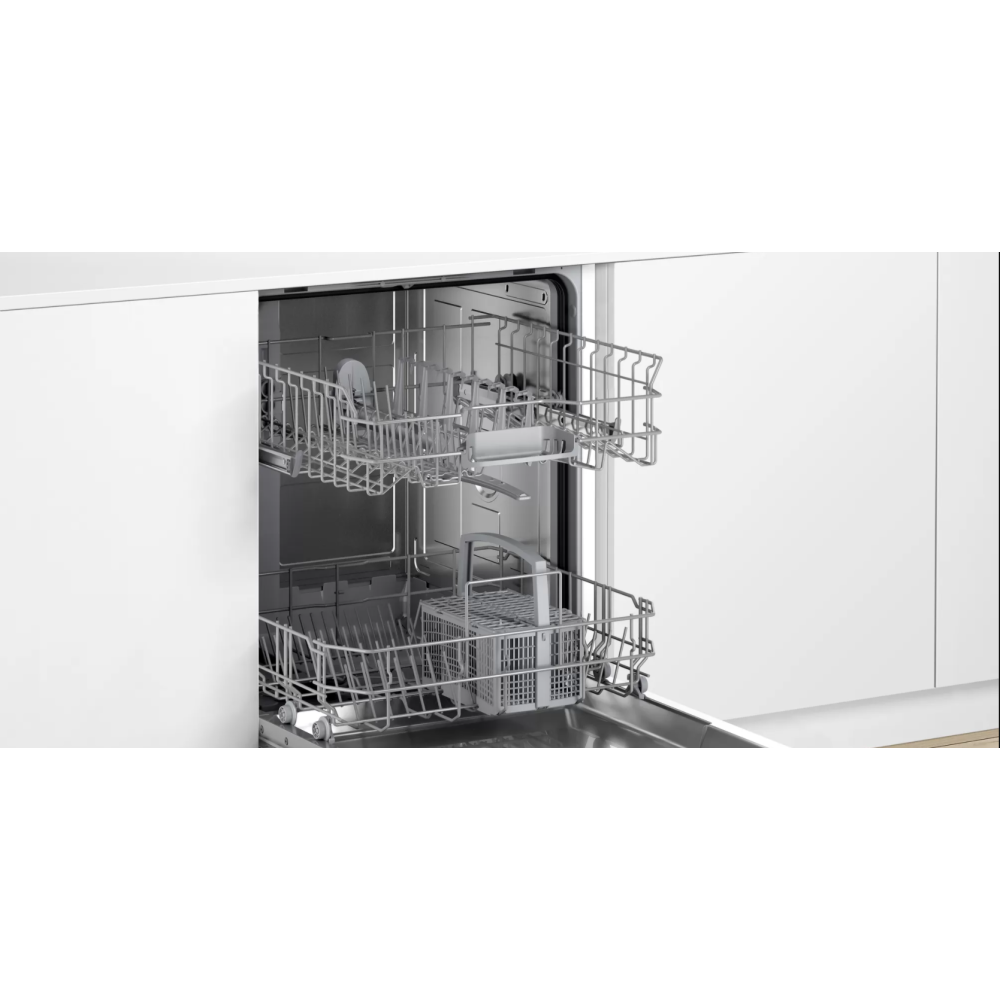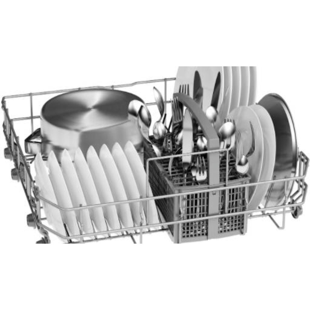 Посудомоечная машина Bosch SMV25CX03R — встраиваемая модель белого цвета. Управление производится при помощи кнопок и дисплея, на котором отображается ход программ. Прибор рассчитан на 12 комплектов посуды и обеспечивает мытье и сушку классов А на пяти программах мойки. Регулируемая по высоте корзина для посуды позволяет размещать противни и большие кастрюли.