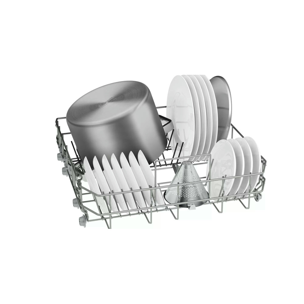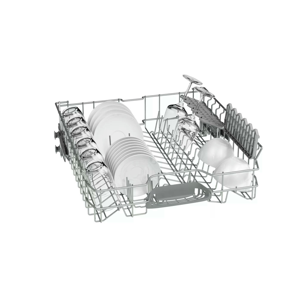 Встраиваемая посудомоечная машина Bosch SMV25FX01R представлена в белом цвете. Модель вмещает в себя до 14 комплектов посуды, поэтому она отлично подойдет для большой семьи. Расход воды на стандартный цикл составляет 9,5 л, что соответствует принятым гигиеническим и санитарным нормам. Индикаторы наличия соли и ополаскивателя предупредят, когда средства закончатся, и потребуется добавить еще. Техника имеет функцию отложенного старта на 3-9 часов. Поэтому вы можете запустить работу оборудования на то время, которое будет удобнее.