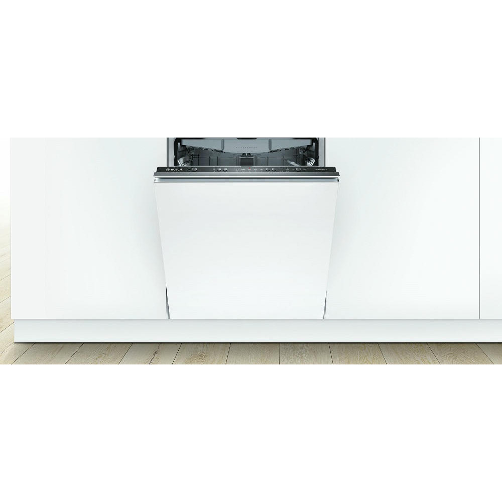 Bosch SMV25FX02R — полноразмерная встраиваемая посудомоечная машина с функцией ГигиенаПлюс, которая дезинфицирует посуду за счет ополаскивания водой 70° C в течение 10 минут. Благодаря замку ServoSchloss нет необходимости закрывать дверь машины «до упора» если угол открытия двери менее 10 градусов. Всеми режимами управляет мощный процессор с помощью системы AquaSensor.