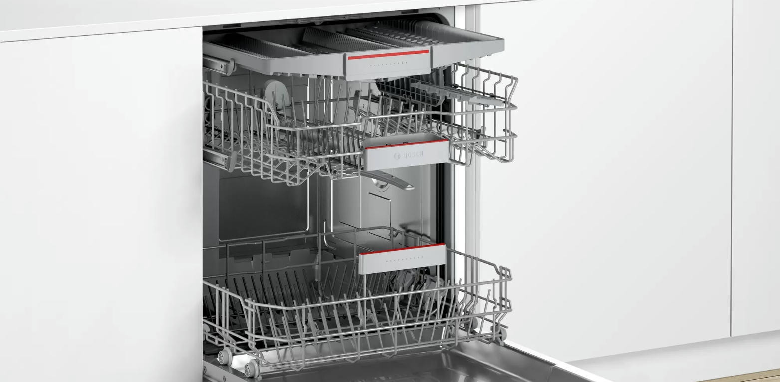 Посудомоечная машина Bosch SMV25GX03R имеет экономичный и тихий инверторный мотор EcoSilenceDrive. Трудно представить себе случайное повреждение стиральной или посудомоечной машины Bosch. Даже для нарушения целостности наливного шланга потребуются немалые механические усилия. Но, если подобная аварийная ситуация все-таки произойдет, сработает система АquaStop («ВодаСтоп»): при достижении определенного уровня воды в страховочной емкости срабатывает поплавковый выключатель, и клапаны перекрывают водоснабжение агрегата.