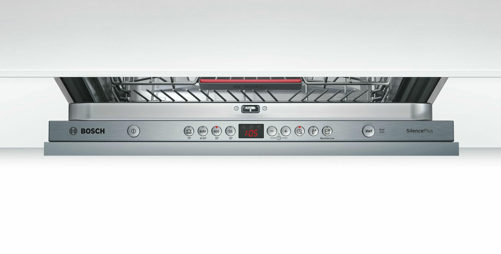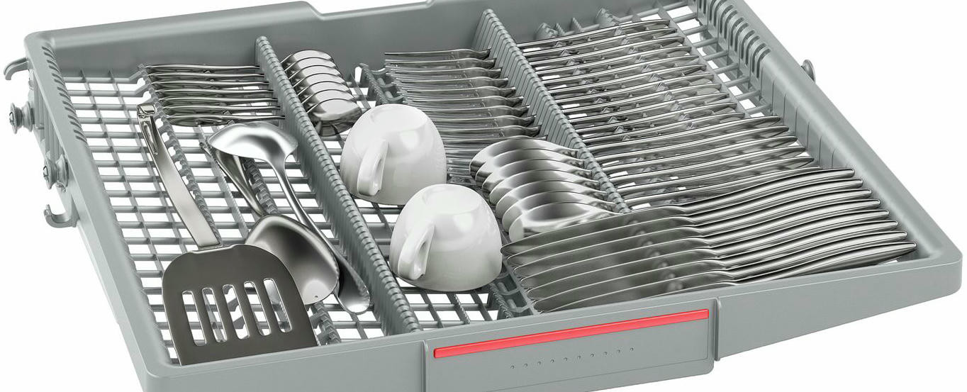 Для того чтобы в нижнем ящике уместились противни или габаритные кастрюли, вторую корзину можно поднять при помощи Rackmatic-3. Функция «Гигиена Плюс» дезинфицирует посуду за счет ополаскивания водой 70° C в течение 10 минут.