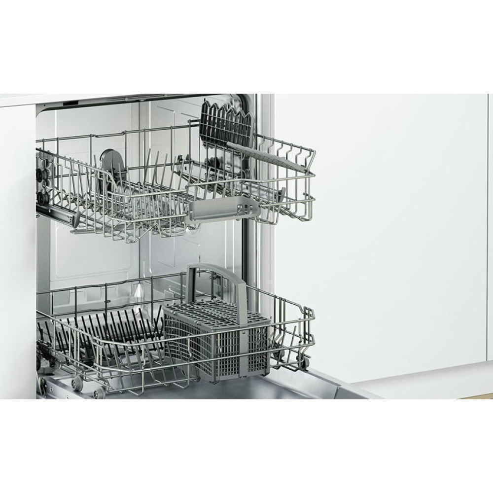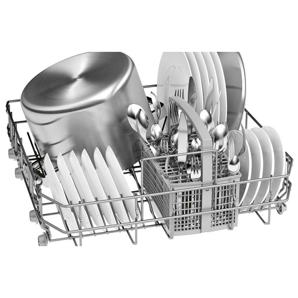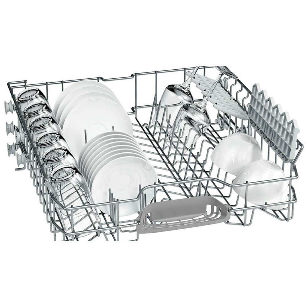 Посудомоечная машина Bosch SMV46AX01E оснащена 6 программами, в том числе «авто» и «интенсивная», которые подходят для посуды с высокой степенью загрязненности. Верхняя корзина регулируется по высоте, что позволяет поместить в нижний короб более крупную посуду, например, блюдо или объемную кастрюлю, что увеличивает комфорт эксплуатации. Система AquaStop гарантирует безопасность использования, защищая устройство от протечек.
