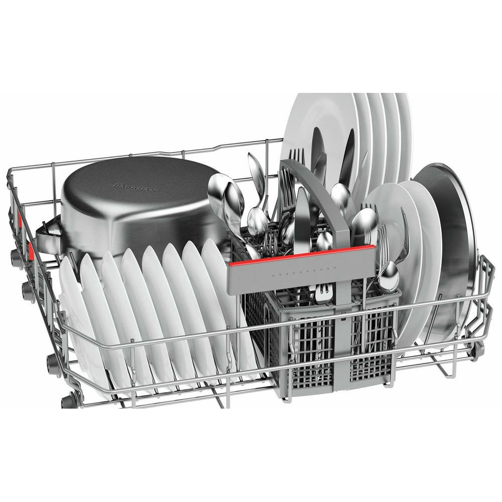 Встраиваемая посудомоечная машина Bosch SMV46NX01R эффективно справляется с грязной посудой благодаря датчику AquaSensor, который определяет наличие остатков пищи. Функция HygienePlus адаптирует цикл мытья к передовым гигиеническим требованиям, делая чистую посуду подходящей маленьким детям и людям, страдающим от аллергии. С технологией «бережного мытья стекла» степень жесткости воды в моечной камере поддерживается автоматически, в заданном потребителем диапазоне значений.
